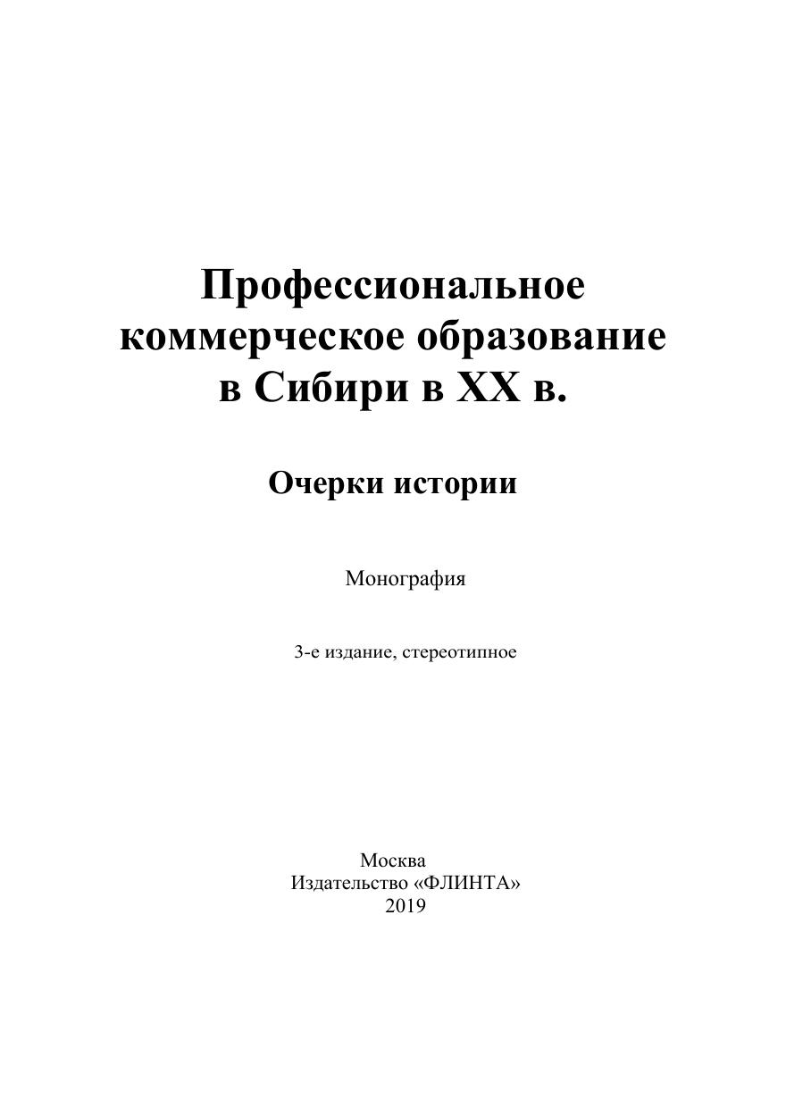 Профессиональное коммерческое образование в Сибири в ХХ в. Очерки истории