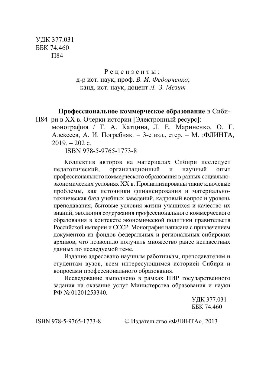 Издание адресовано научным работникам, преподавателям и студентам вузов, всем интересующимся историей Сибири и вопросами профессионального образования.