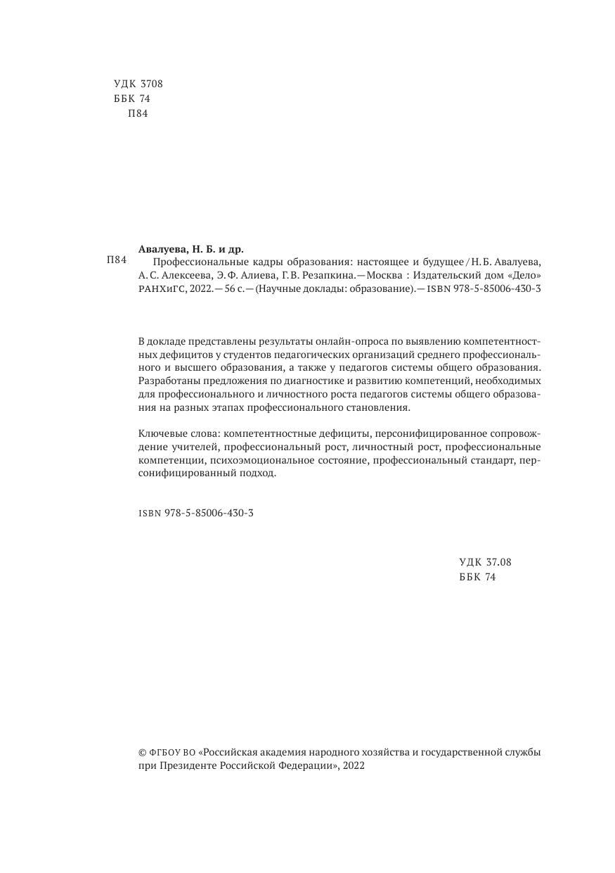 В докладе представлены результаты онлайн-опроса по выявлению компетентностных дефицитов у студентов педагогических организаций среднего профессионального и высшего образования, а также у педагогов системы общего образования. Разработаны предложения по диагностике и развитию компетенций, необходимых для профессионального и личностного роста педагогов системы общего образования на разных этапах профессионального становления. Ключевые слова: компетентностные дефициты, персонифицированное сопровождение учителей, профессиональный рост, личностный рост, профессиональные компетенции, психоэмоциональное состояние, профессиональный стандарт, персонифицированный подход.