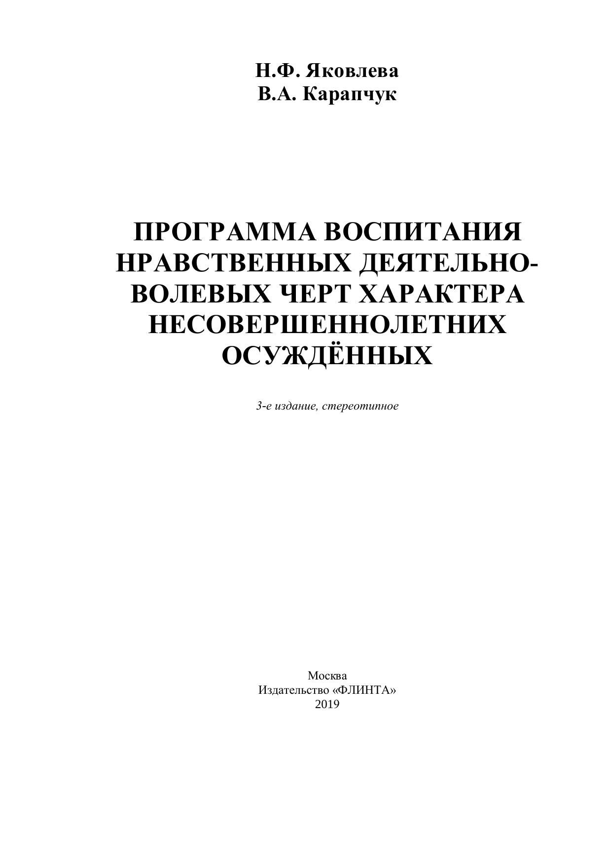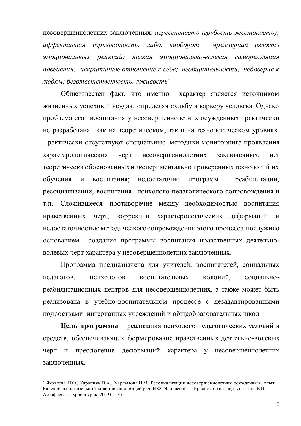 Программа воспитания нравственных деятельно-волевых черт характера несовершеннолетних осужденных