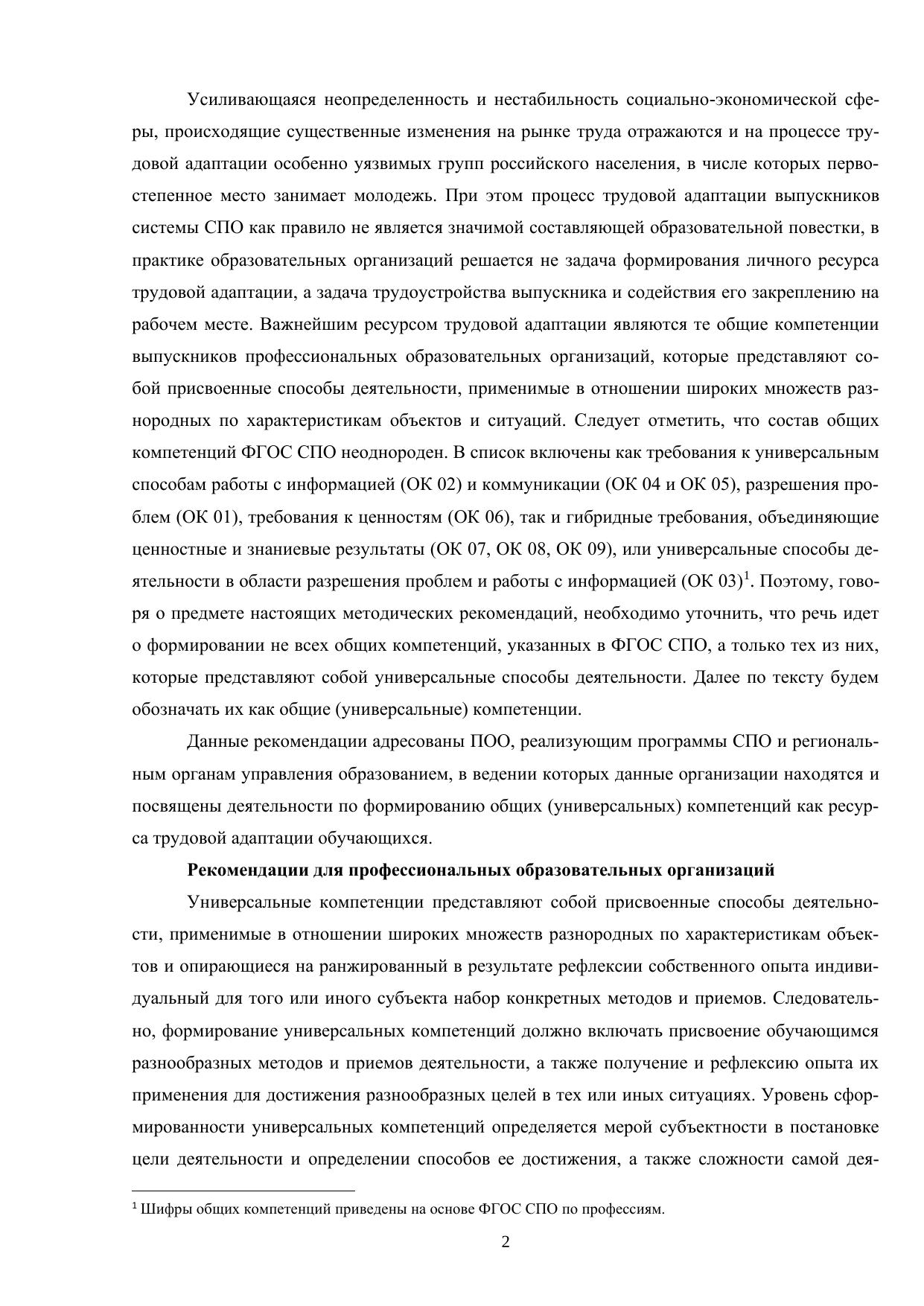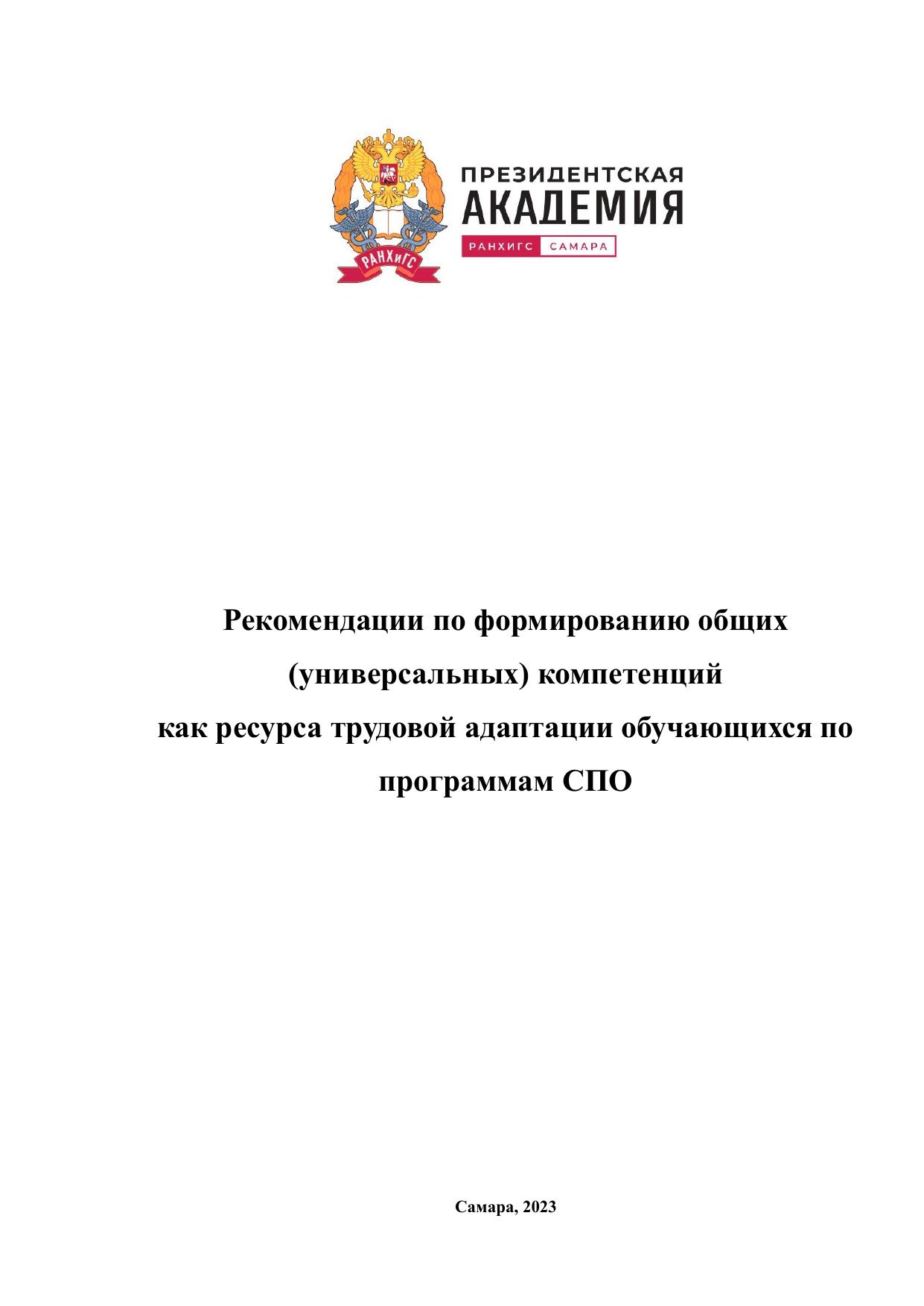 Рекомендации по формированию общих (универсальных) компетенций как ресурса трудовой адаптации обучающихся по программам СПО