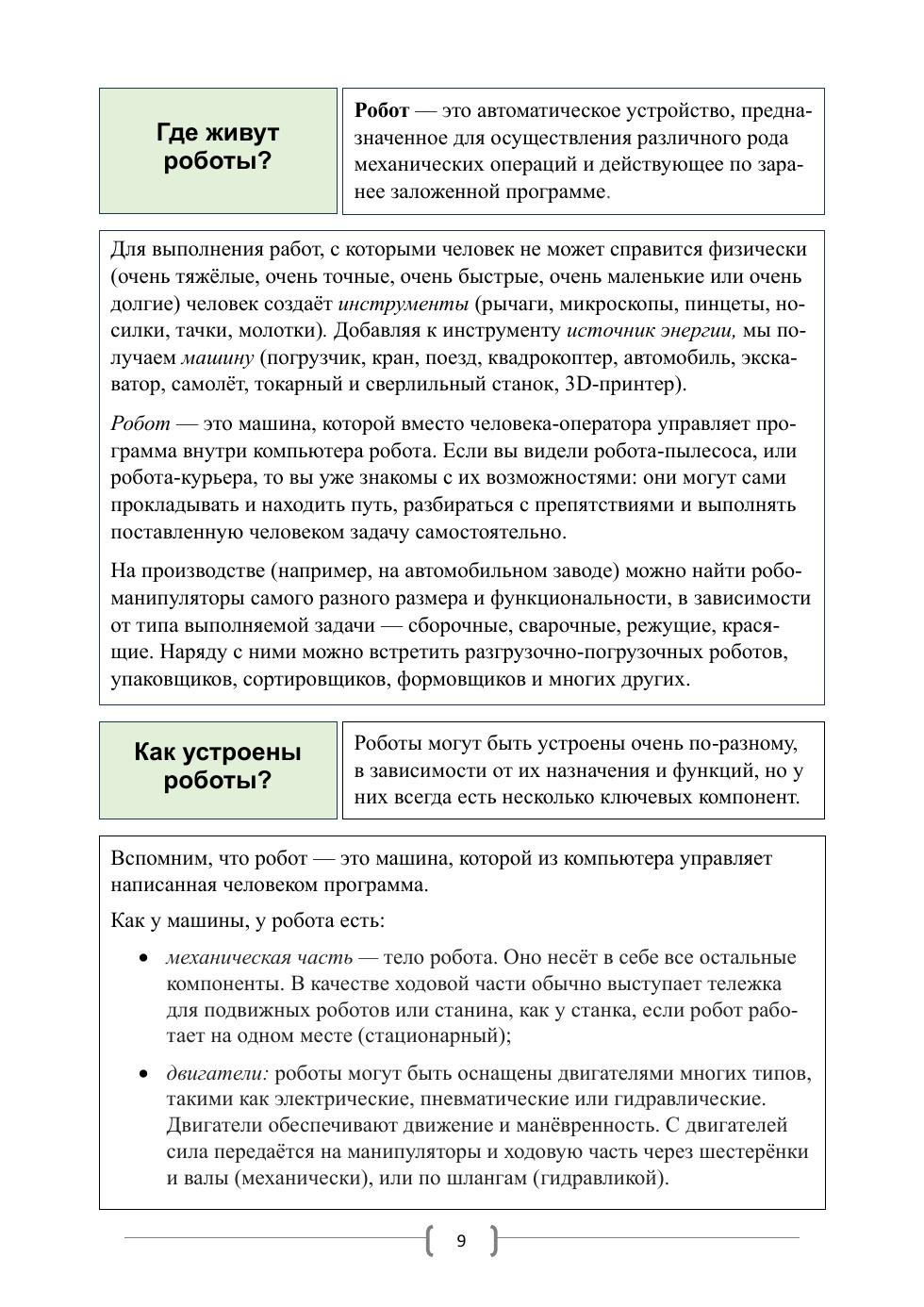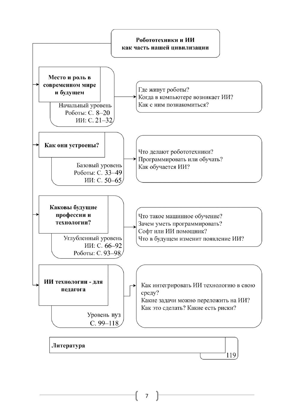 Основное назначение данной книги — стать постоянно сопровождающим учебником по теме «Робототехника и искусственный интеллект» для студентов вузов, в первую очередь, по направлениям и специальностям естественно-научного цикла (математика, информатика, физика, биология и пр.). Учебник предназначен для обучения учащихся теории информатики на протяжении нескольких лет, с 3 по 11 классы (в первую очередь для учащихся психолого-педагогических классов), а также студентов учреждений высшего педагогического образования при изучении искусственного интеллекта и робототехники.