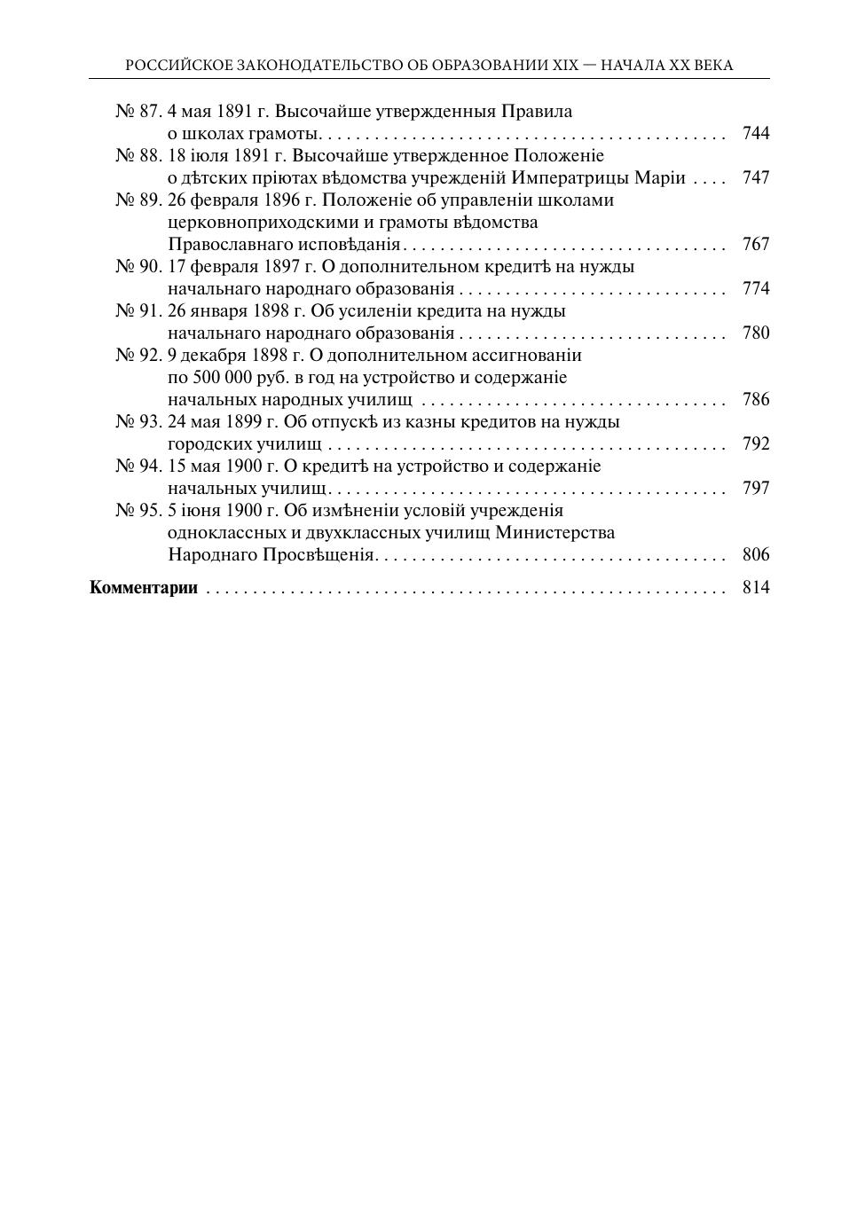 В настоящем издании впервые собраны и систематизированы российские законодательные акты в области образования XIX — начала XX в. Документы раскрывают образовательную политику государства в данный период и процесс развития как системы образования, так и отдельных ее компонентов — начального, среднего, высшего, низшего и среднего профессионального образования. Издание предназначено для специалистов в области истории, образования, права, а также для преподавателей, студентов, аспирантов и докторантов педагогических кафедр вузов.