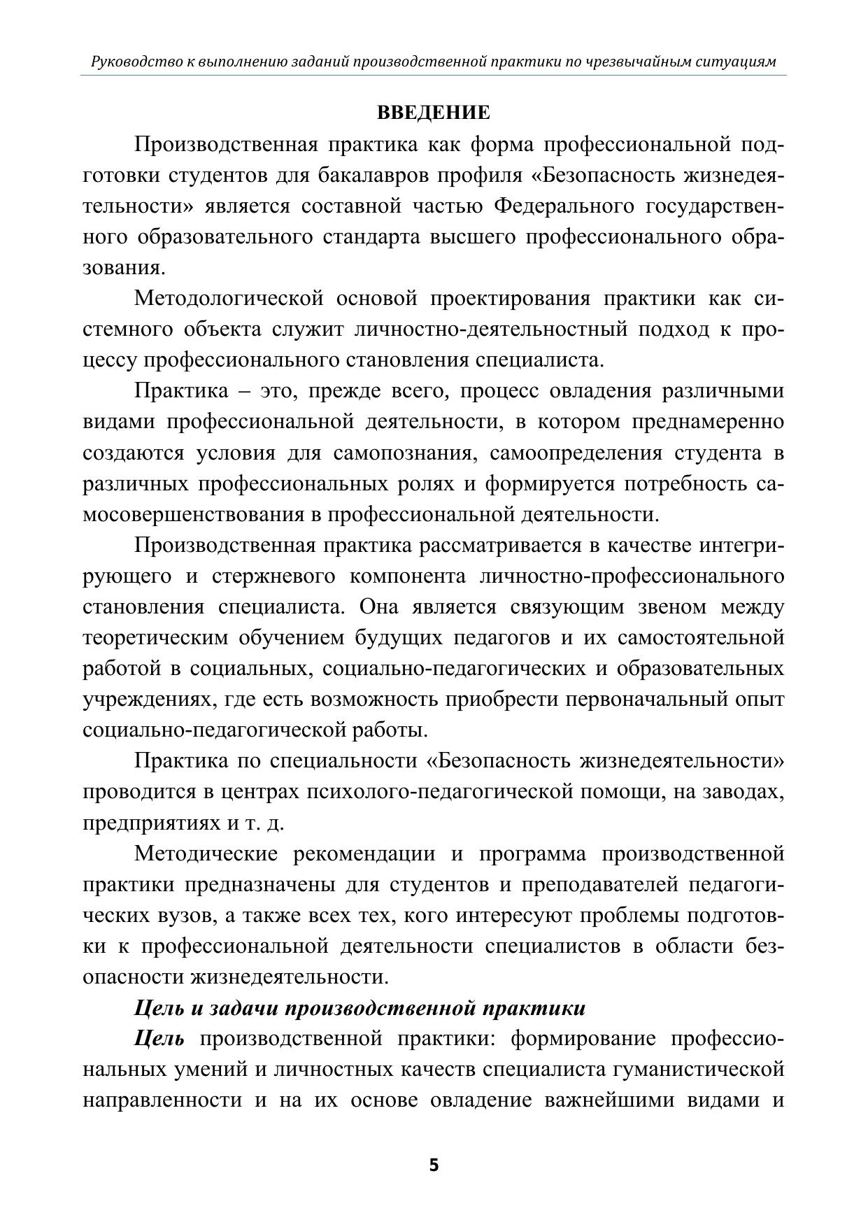 Производственная практика как форма профессиональной подготовки студентов для бакалавров профиля «Безопасность жизнедеятельности» рассматривается в качестве интегрирующего и стержневого компонента личностно-профессионального становления специалиста. Методические рекомендации и программа производственной практики предназначены для студентов и преподавателей педагогических вузов, а также всех тех, кого интересуют проблемы подготовки к профессиональной деятельности специалистов в области безопасности жизнедеятельности.