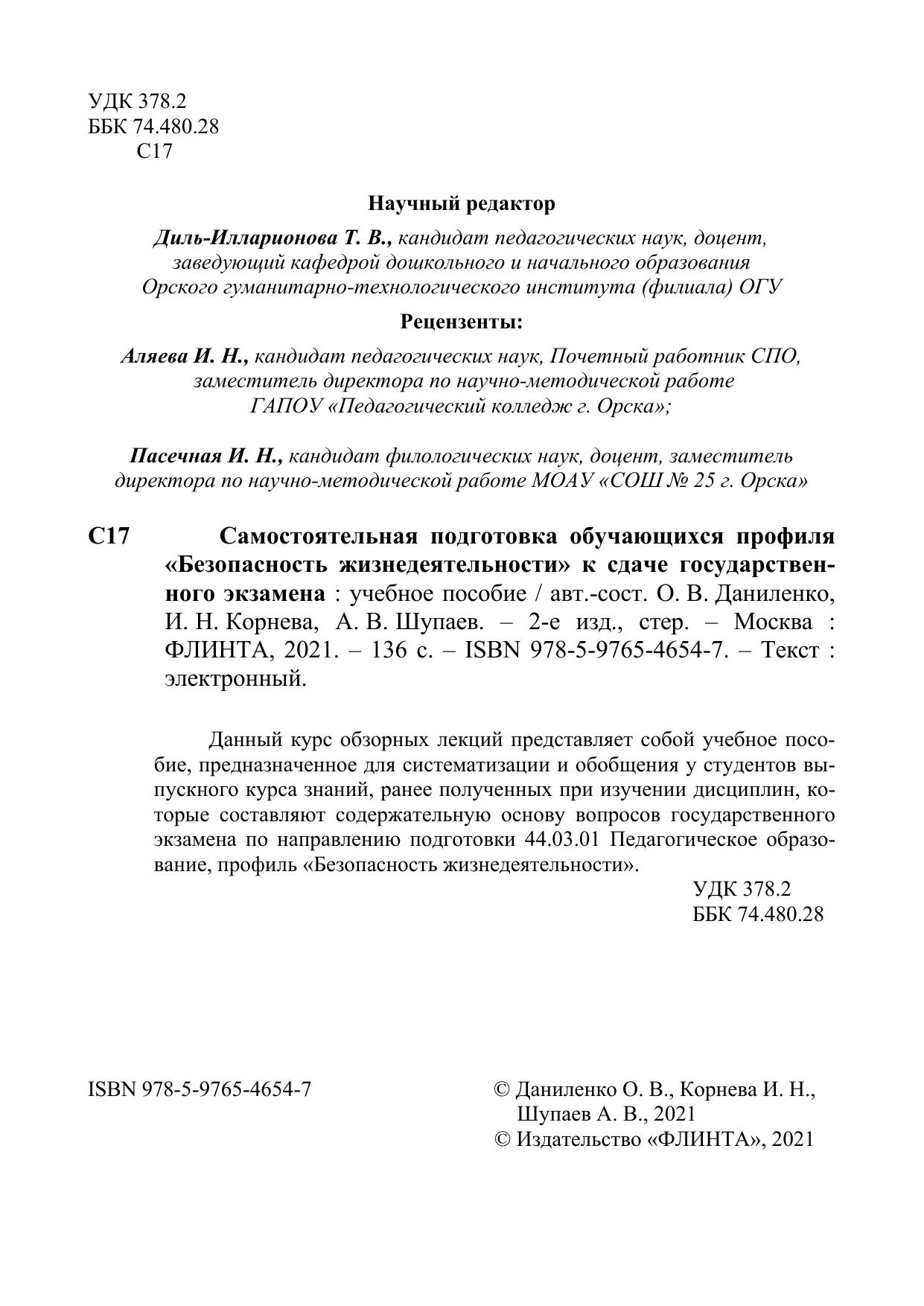 Данный курс обзорных лекций представляет собой учебное пособие, предназначенное для систематизации и обобщения у студентов выпускного курса знаний, ранее полученных при изучении дисциплин, которые составляют содержательную основу вопросов государственного экзамена по направлению подготовки 44.03.01 Педагогическое образование, профиль «Безопасность жизнедеятельности».