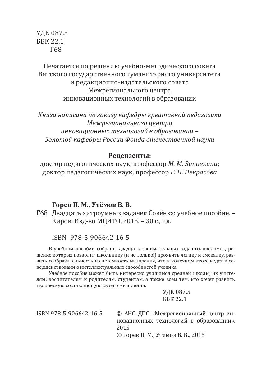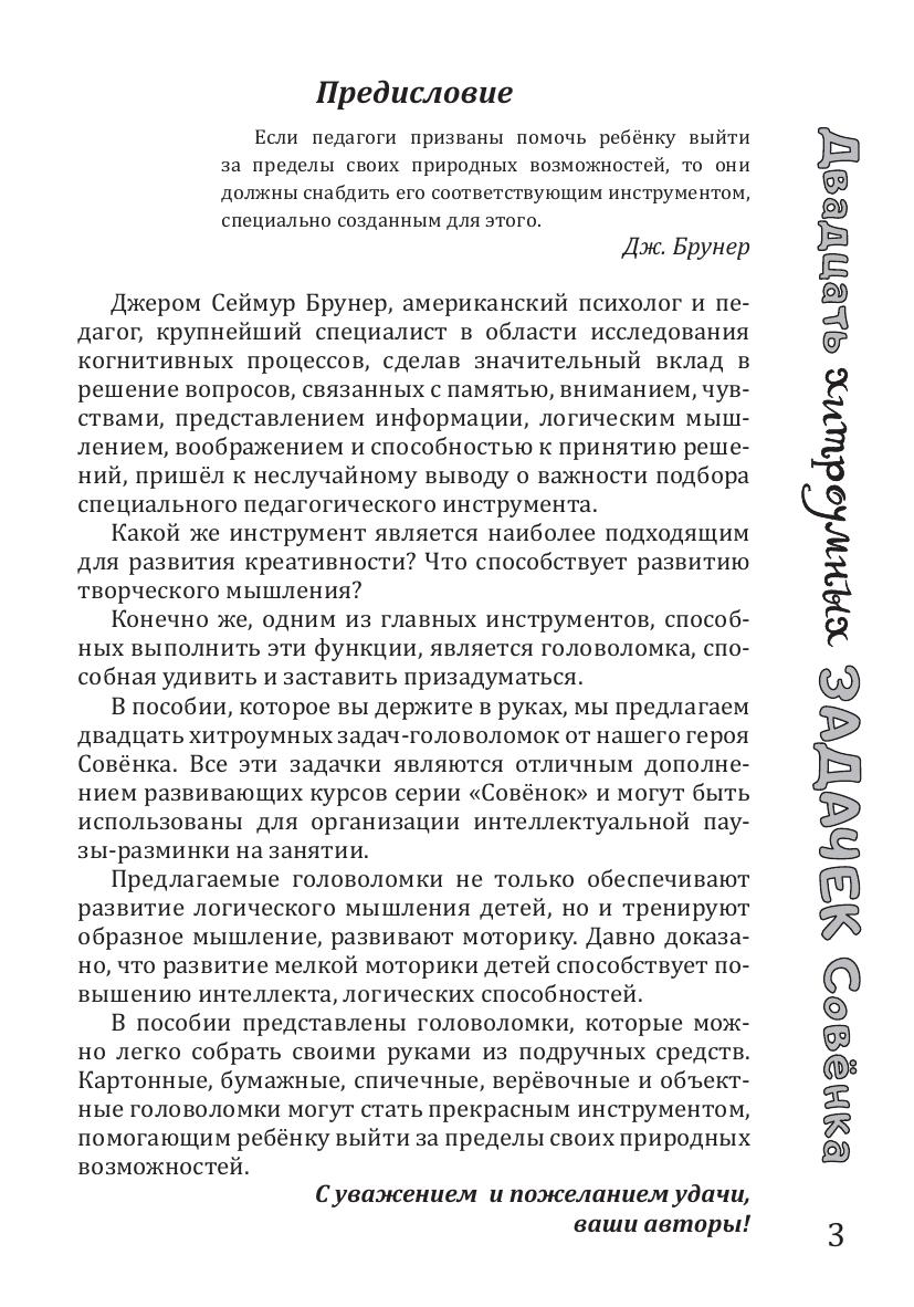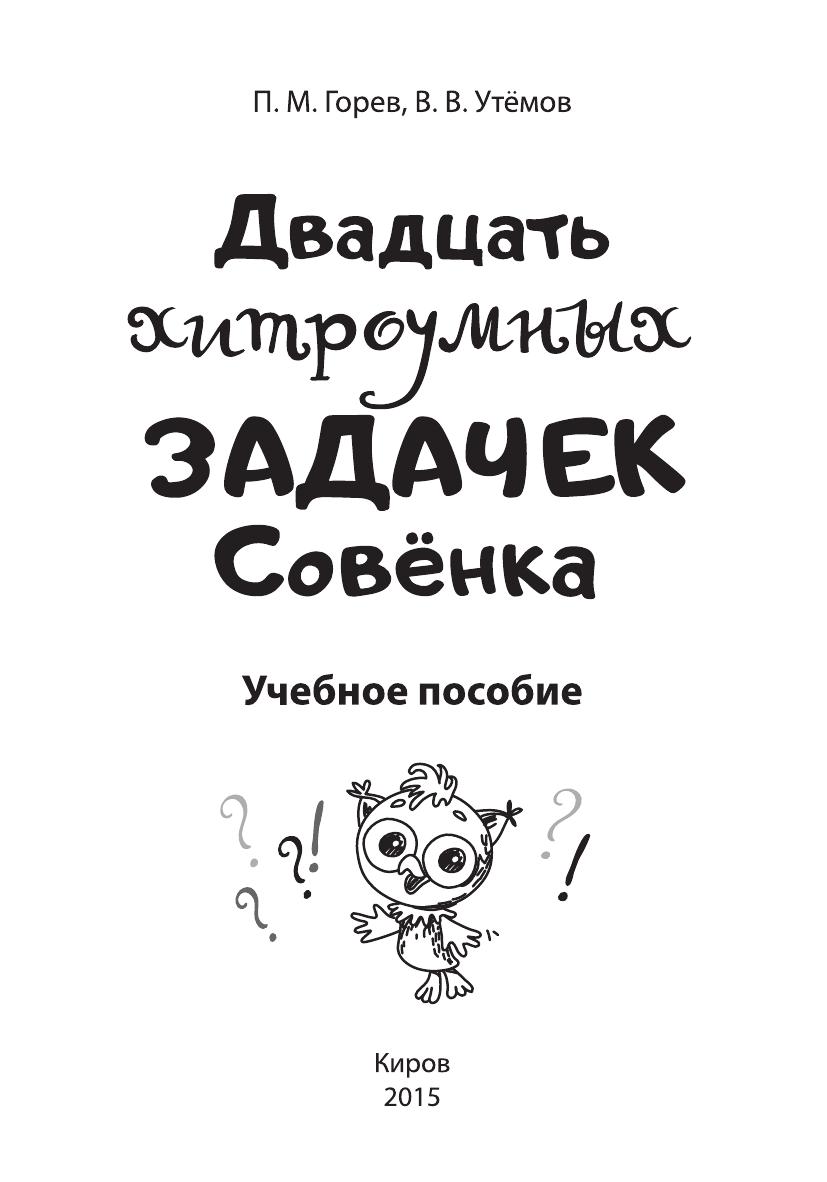 В учебном пособии собраны двадцать занимательных задач-головоломок, решение которых позволит школьнику (и не только!) проявить логику и смекалку, развить сообразительность и системность мышления, что в конечном итоге ведет к совершенствованию интеллектуальных способностей ученика. Учебное пособие может быть интересно учащимся средней школы, их учителям, воспитателям и родителям, студентам, а также всем тем, кто хочет развить творческую составляющую своего мышления.