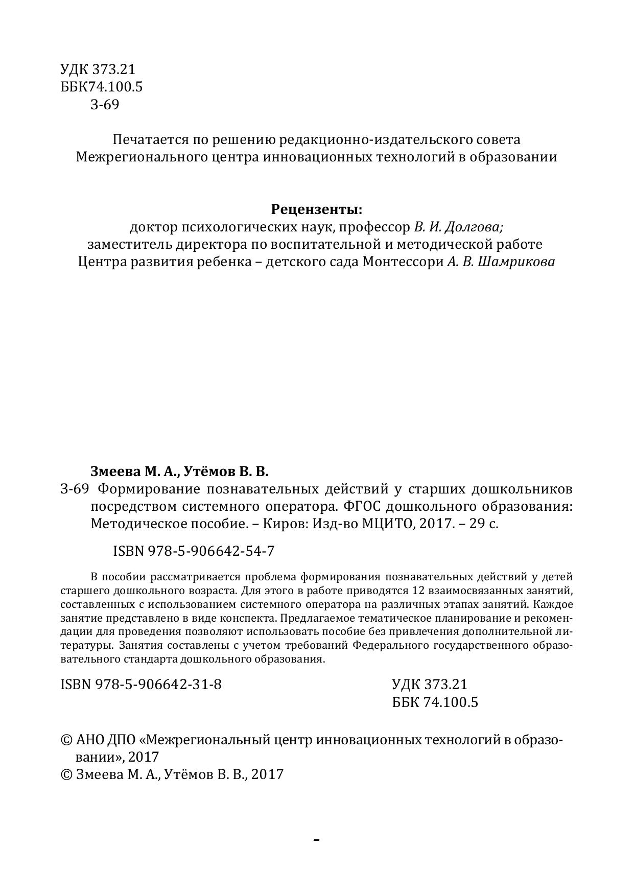 В пособии рассматривается проблема формирования познавательных действий у детей старшего дошкольного возраста. Для этого в работе приводятся 12 взаимосвязанных занятий, составленных с использованием системного оператора на различных этапах занятий. Каждое занятие представлено в виде конспекта. Предлагаемое тематическое планирование и рекомендации для проведения позволяют использовать пособие без привлечения дополнительной литературы. Занятия составлены с учетом требований Федерального государственного образовательного стандарта дошкольного образования