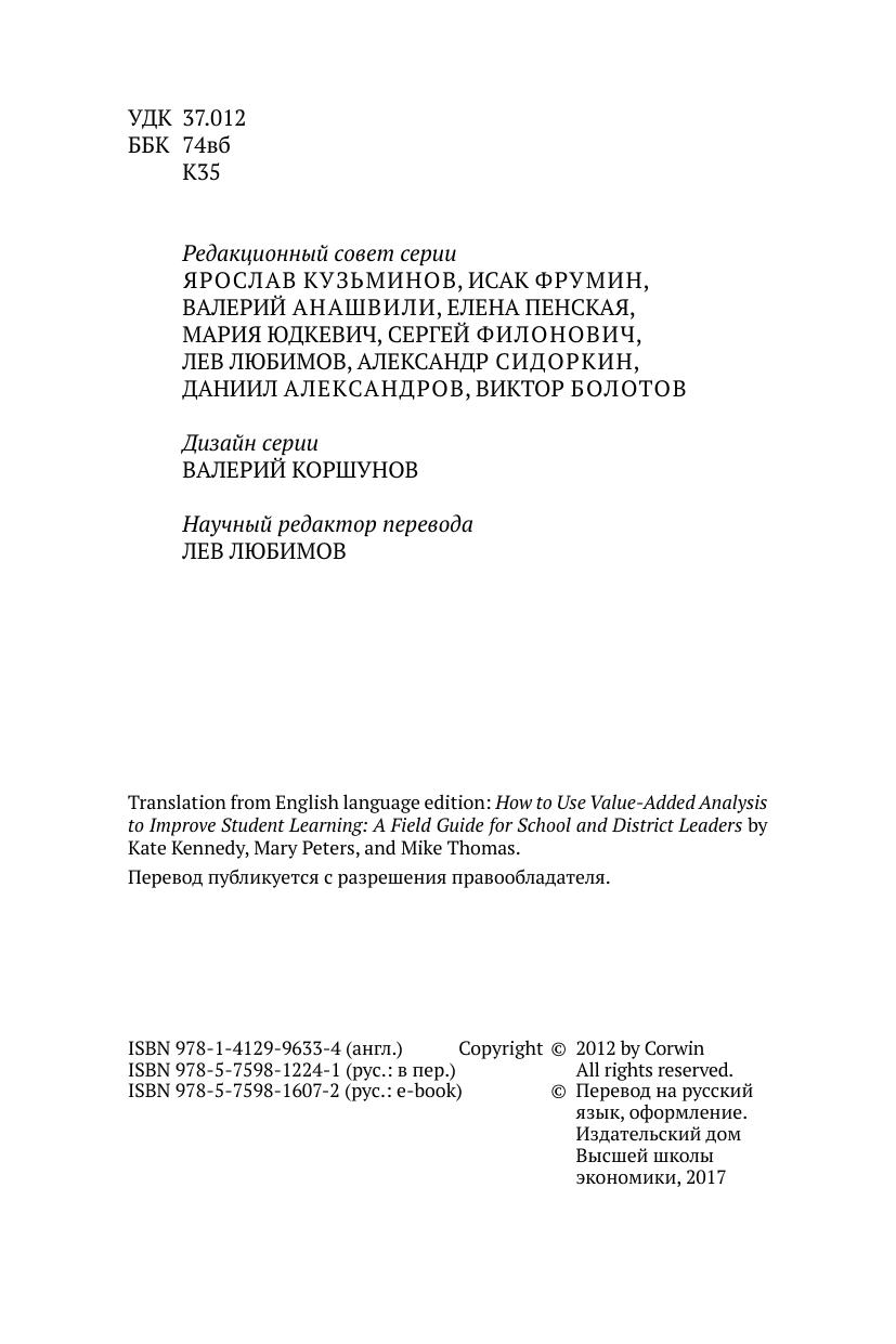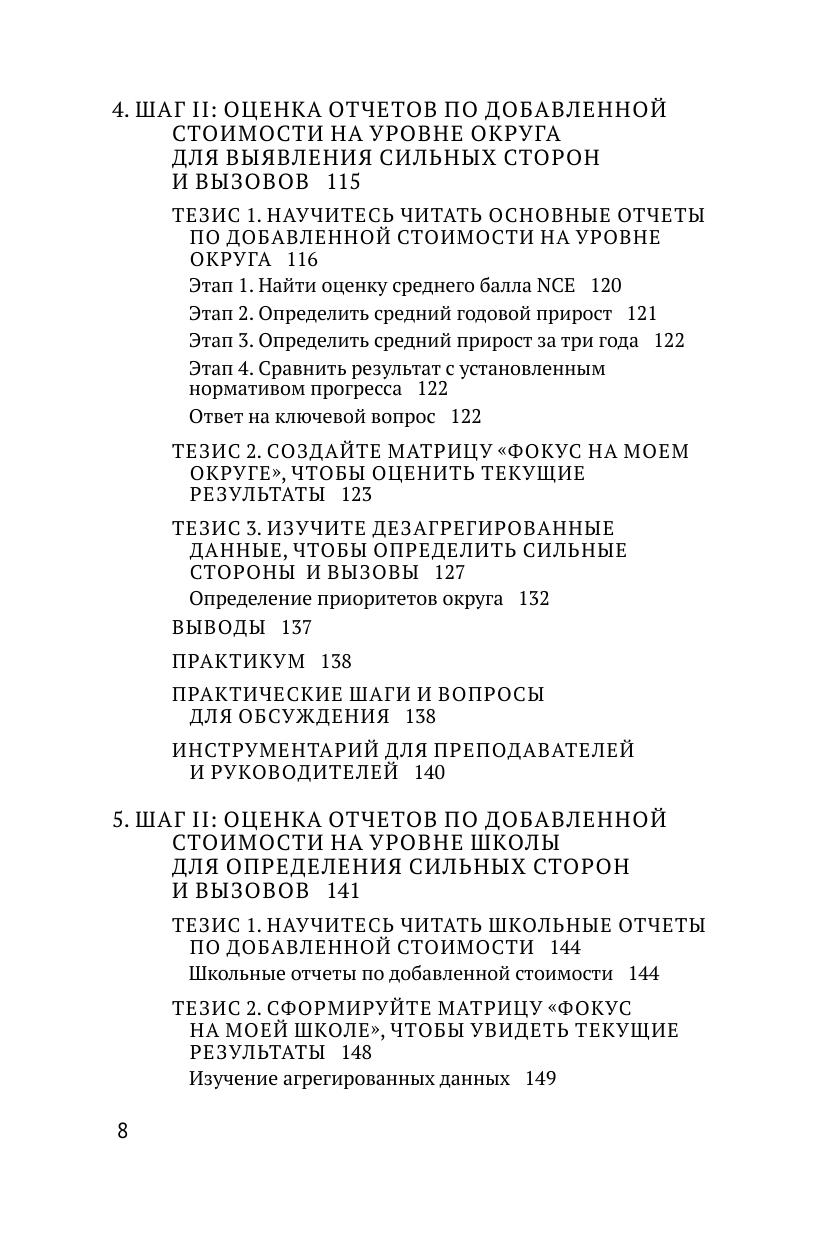 Книга посвящена объяснению, способам применения и интерпретирования технологии оценивания деятельности как образовательных институтов (региональных и муниципальных органов управления образованием), так и участников образовательного процесса (в первую очередь учителей и учеников) методом измерения добавленной стоимости. авторы этой инновации применили данный термин из экономической теории к задачам школьного образования, связанным с многогранной проблемой оценивания результатов. Добавленная стоимость в этой книге — разница между начальной успеваемостью ученика (результатами тестов прошлого года) и его текущей успеваемостью (результатами тестов этого года). Речь идет не о разовом контроле разницы в результатах за определенный промежуток времени, а о создании системы статистического учета данных, их накопления, обработки специальными статистическими методами и обеспечения их транспарентности с целью постоянного анализа и принятия конкретных решений в отношении всех субъектов школьной образовательной деятельности. Значимость этой книги для российского читателя в том, что она ярко и зримо демонстрирует признаки высокой образовательной культуры во всех ее аспектах — организационных, этических, межличностных, гуманистических и т.д. несомненно, книга станет настольной у тех, для кого школа — профессия и смысл жизни.