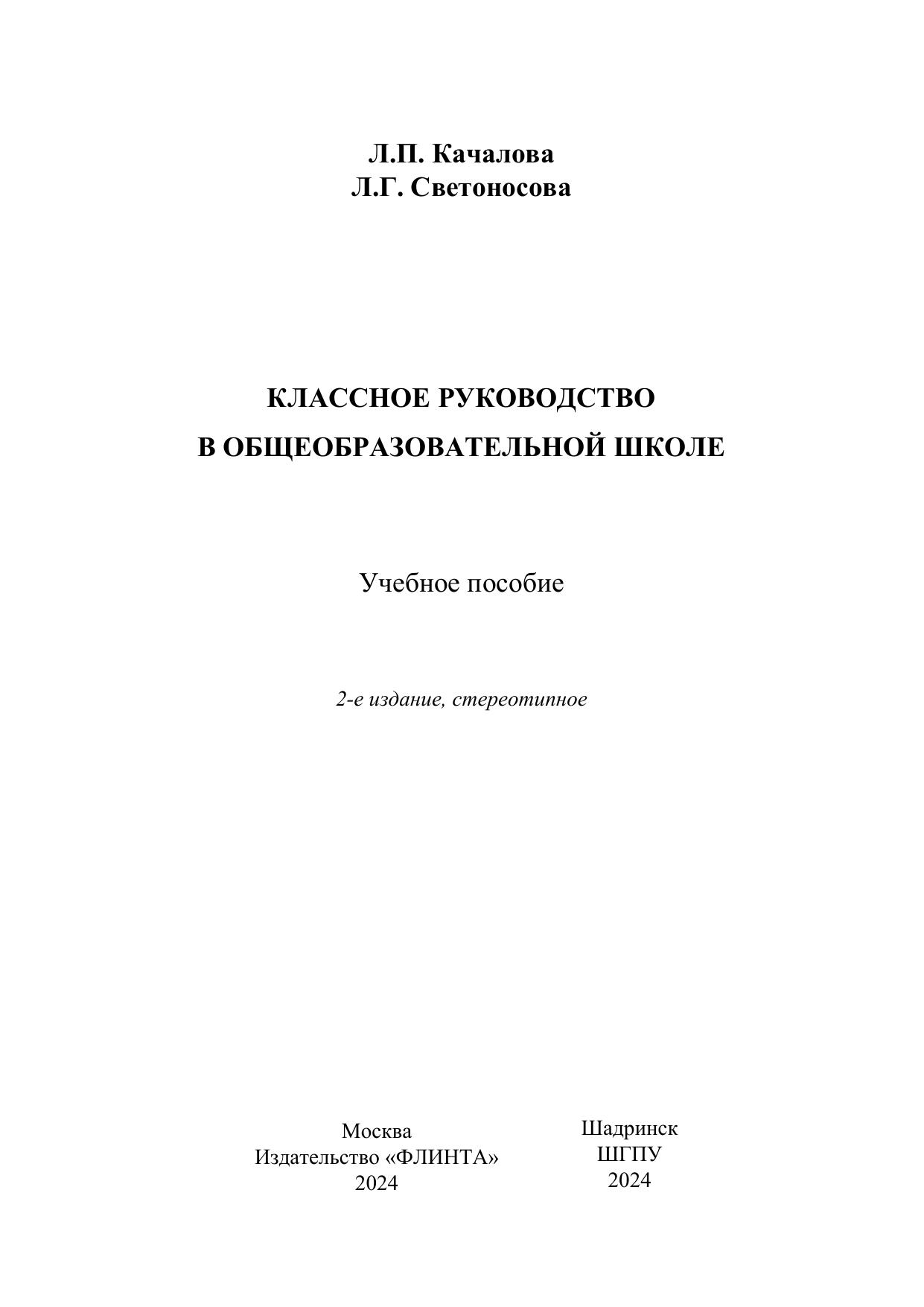 Авторы: Качалова Л. П., Светоносова Л. Г.