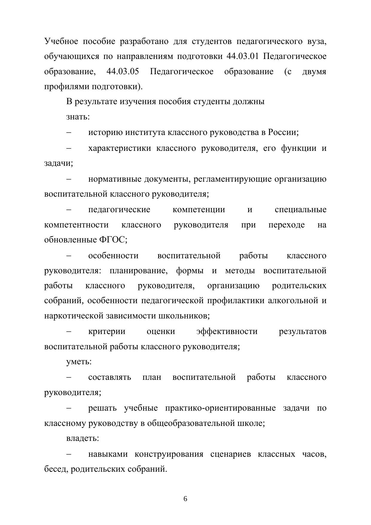 Пособие раскрывает историю института классного руководства в России, характеристики классного руководителя, его функции и задачи, нормативные документы, регламентирующие организацию воспитательной работы классного руководителя, ее особенности. Пособие содержит задания для контроля и самостоятельной работы, а также учебные практико-ориентированные задачи для решения будущими классными руководителями.