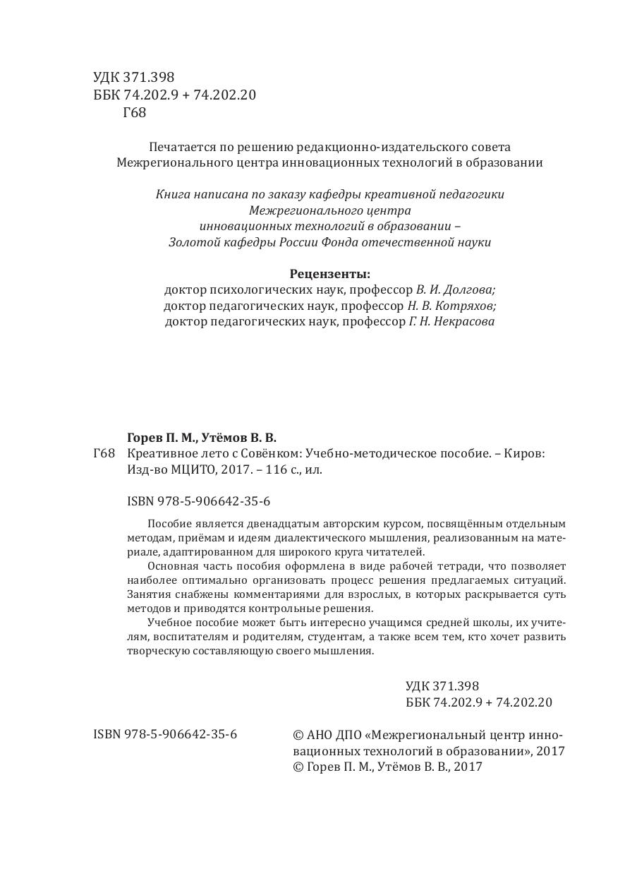 Пособие является двенадцатым авторским курсом, посвящённым отдельным методам, приёмам и идеям диалектического мышления, реализованным на материале, адаптированном для широкого круга читателей. Основная часть пособия оформлена в виде рабочей тетради, что позволяет наиболее оптимально организовать процесс решения предлагаемых ситуаций. Занятия снабжены комментариями для взрослых, в которых раскрывается суть методов и приводятся контрольные решения. Учебное пособие может быть интересно учащимся средней школы, их учителям, воспитателям и родителям, студентам, а также всем тем, кто хочет развить творческую составляющую своего мышления