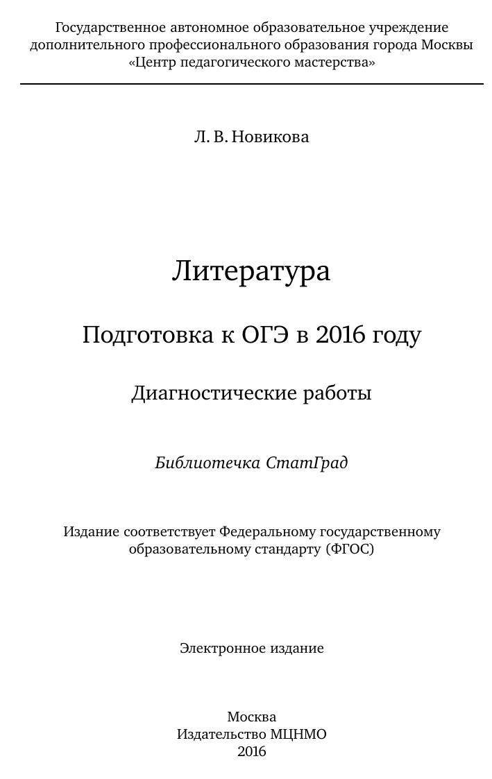 Литература. Подготовка к ОГЭ в 2016 году. Диагностические работы