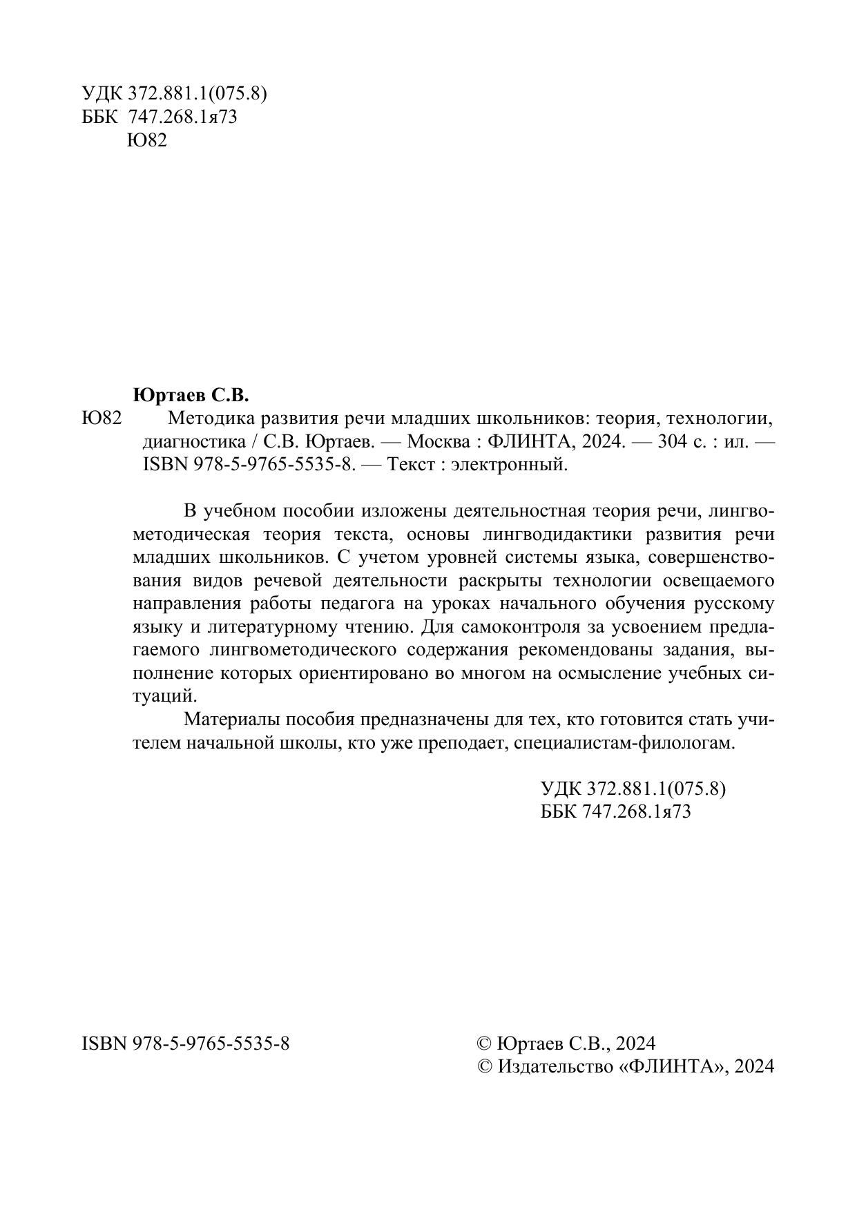 Методика развития речи младших школьников: теория, технологии, диагностика