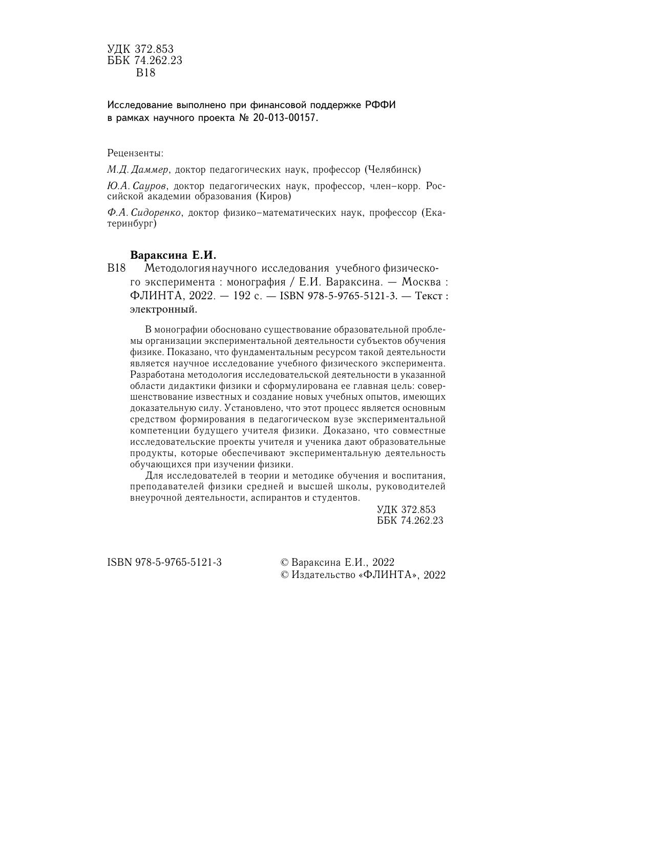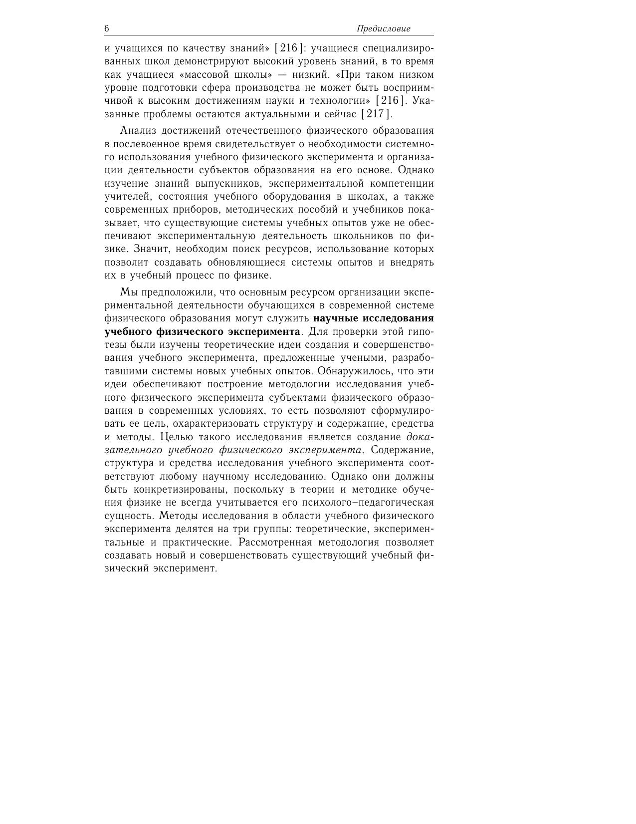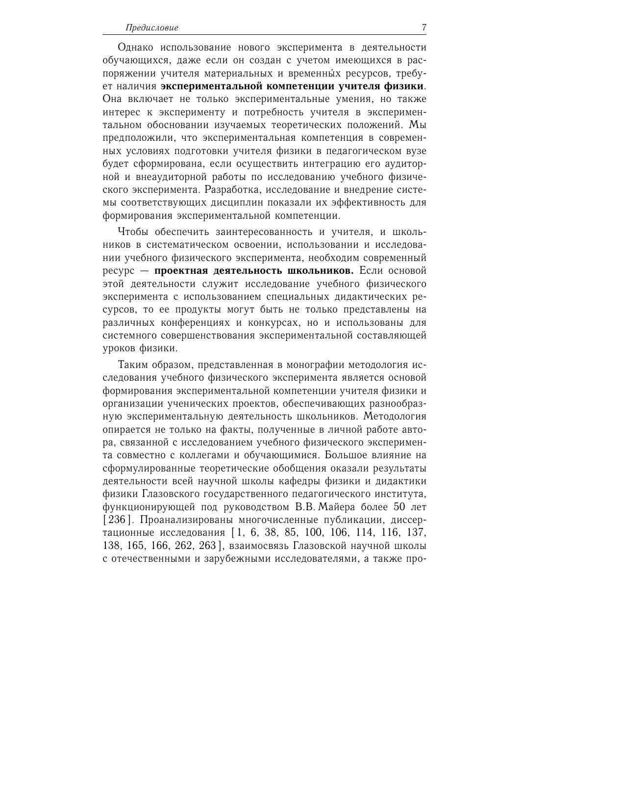 В монографии обосновано существование образовательной проблемы организации экспериментальной деятельности субъектов обучения физике. Показано, что фундаментальным ресурсом такой деятельности является научное исследование учебного физического эксперимента. Разработана методология исследовательской деятельности в указанной области дидактики физики и сформулирована ее главная цель: совершенствование известных и создание новых учебных опытов, имеющих доказательную силу. Установлено, что этот процесс является основным средством формирования в педагогическом вузе экспериментальной компетенции будущего учителя физики. Доказано, что совместные исследовательские проекты учителя и ученика дают образовательные продукты, которые обеспечивают экспериментальную деятельность обучающихся при изучении физики.