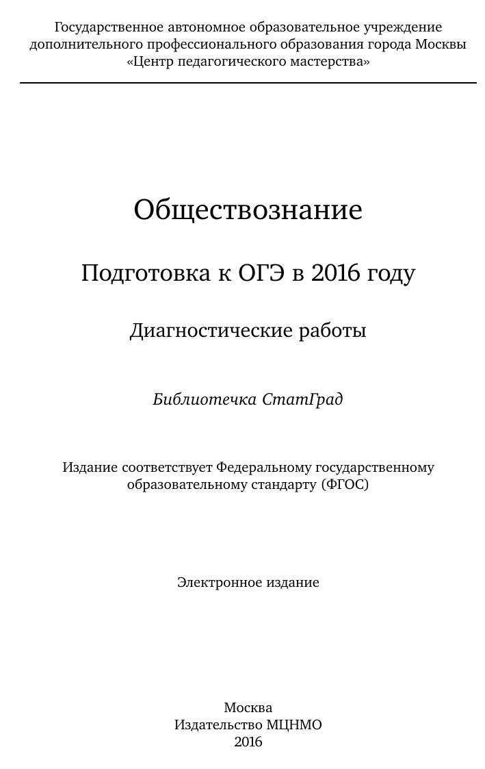Обществознание. Подготовка к ОГЭ в 2016 году. Диагностические работы
