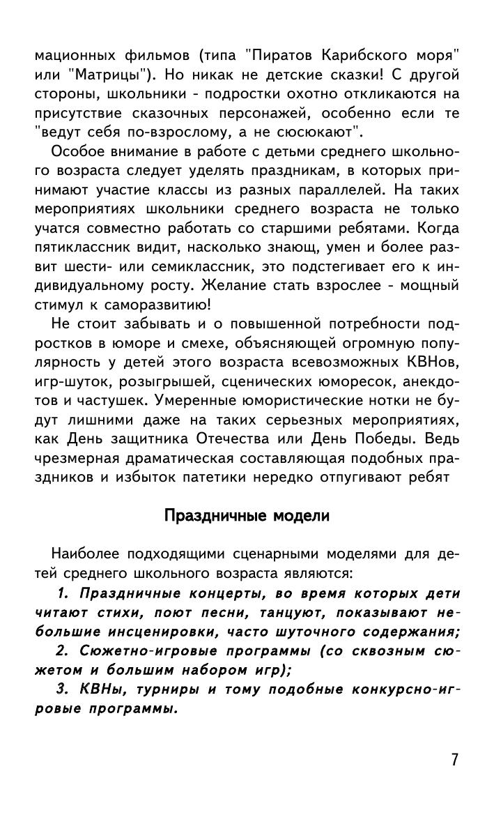 В книге представлены сценарии праздников, игры и викторины, фестивали и КВНы для учащихся средней школы.