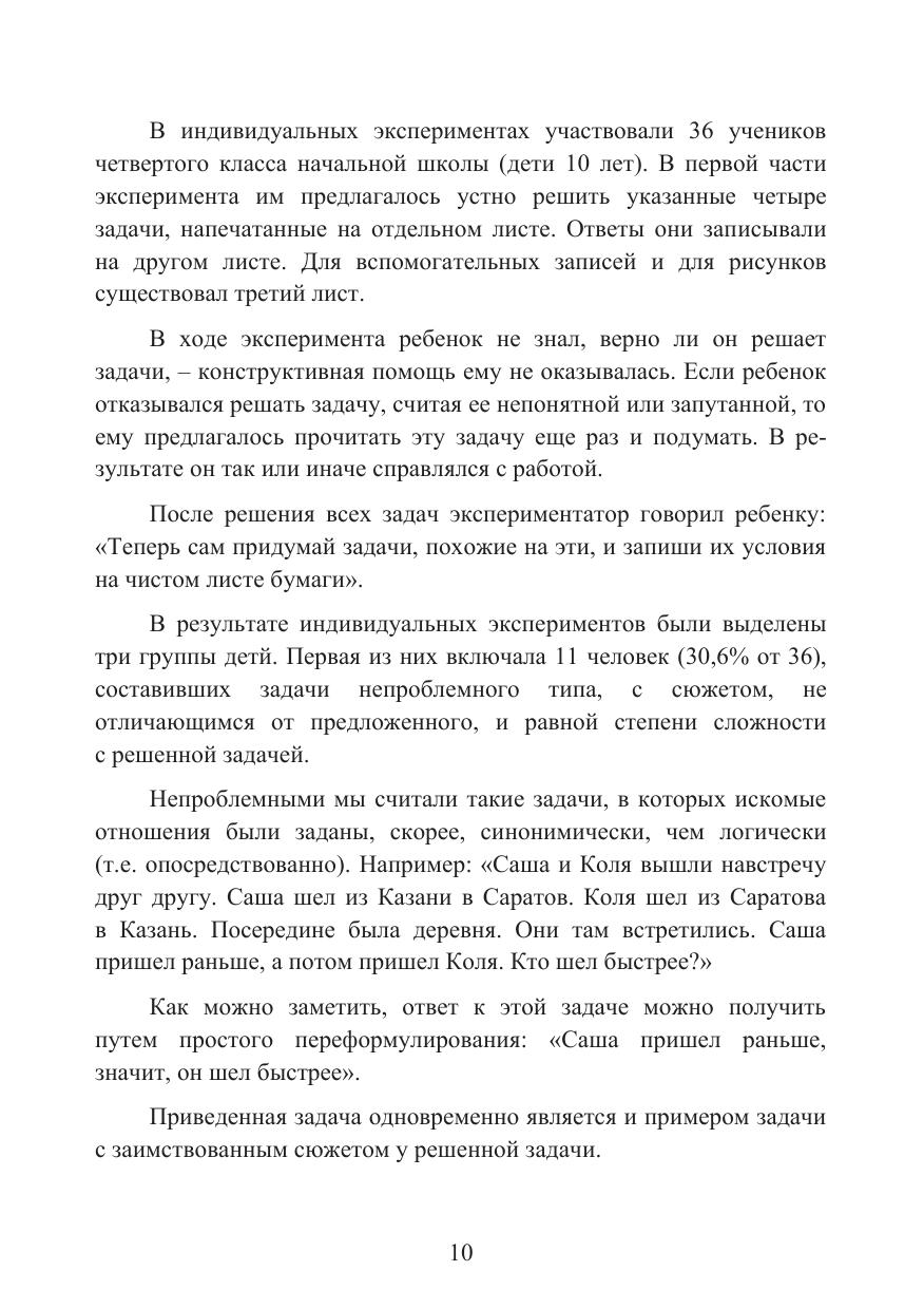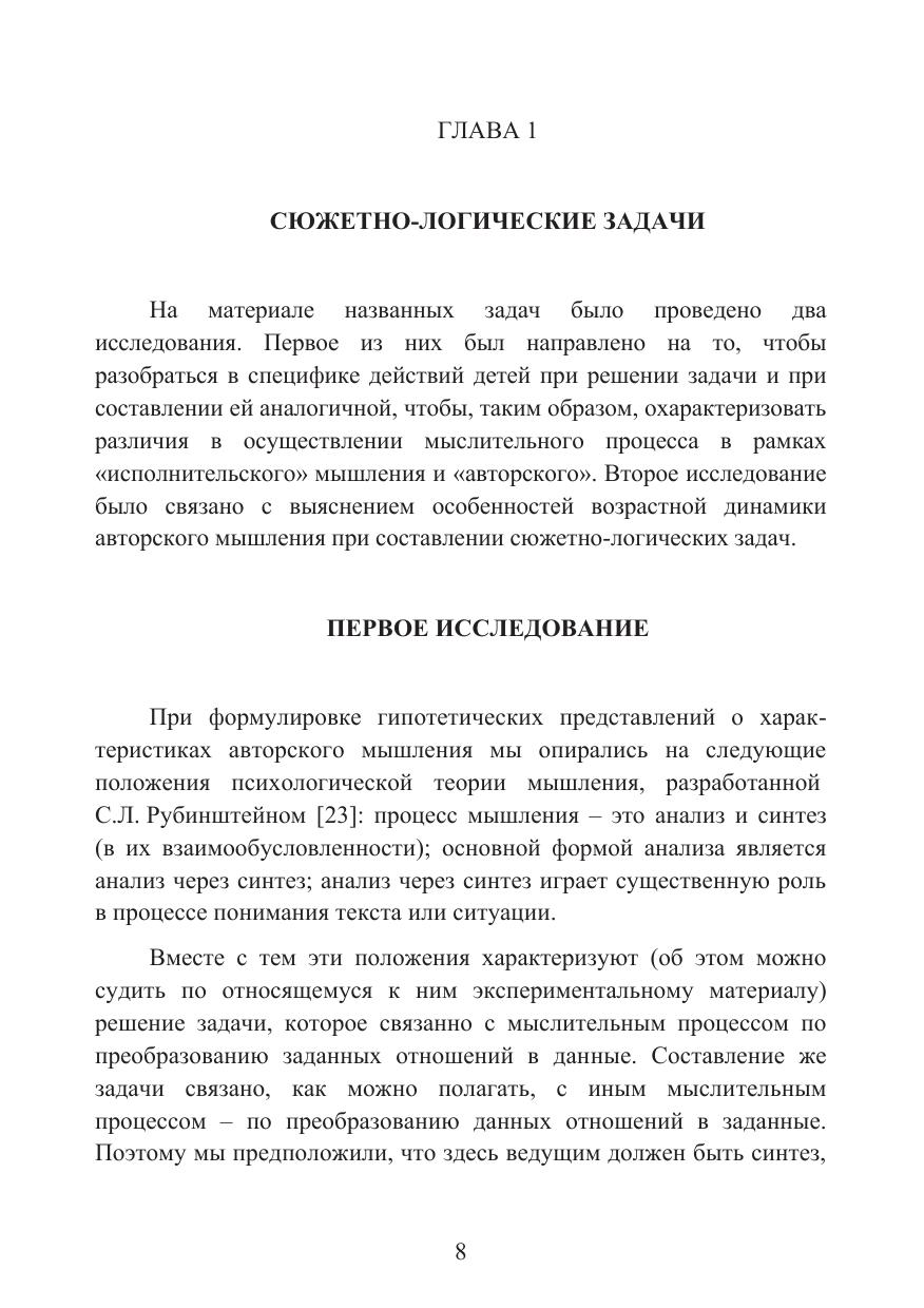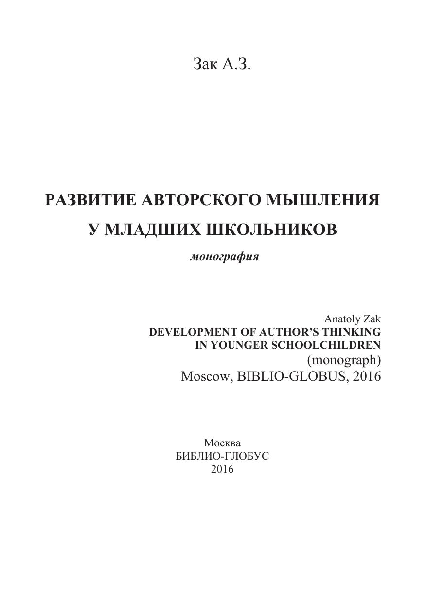 В монографии излагается содержание исследования особенностей развития авторского мышления в начальной школе. Под авторским мышлением понимается творческая мыслительная деятельность по составлению задач. В изложенном исследовании на материале поисковых задач разного вида изучался ряд фундаментальных проблем психологии, решение которых необходимо для понимания закономерностей возрастной динамики авторского мышления в начальной школе: его связь с видом задач, их сложностью и условиями составления. Охарактеризованы основные способы авторского мышления, связанные с формальным, содержательным, продуктивным и оригинальным подходами в составлении задач, раскрыто распределение этих подходов в каждом классе начальной школы, разработано значительное число исследовательских методик. Для специалистов в области возрастной и педагогической психологии, для школьных и практических психологов, преподавателей и студентов психологических и педагогических факультетов вузов и училищ, слушателей курсов повышения квалификации, учителей начальных классов.