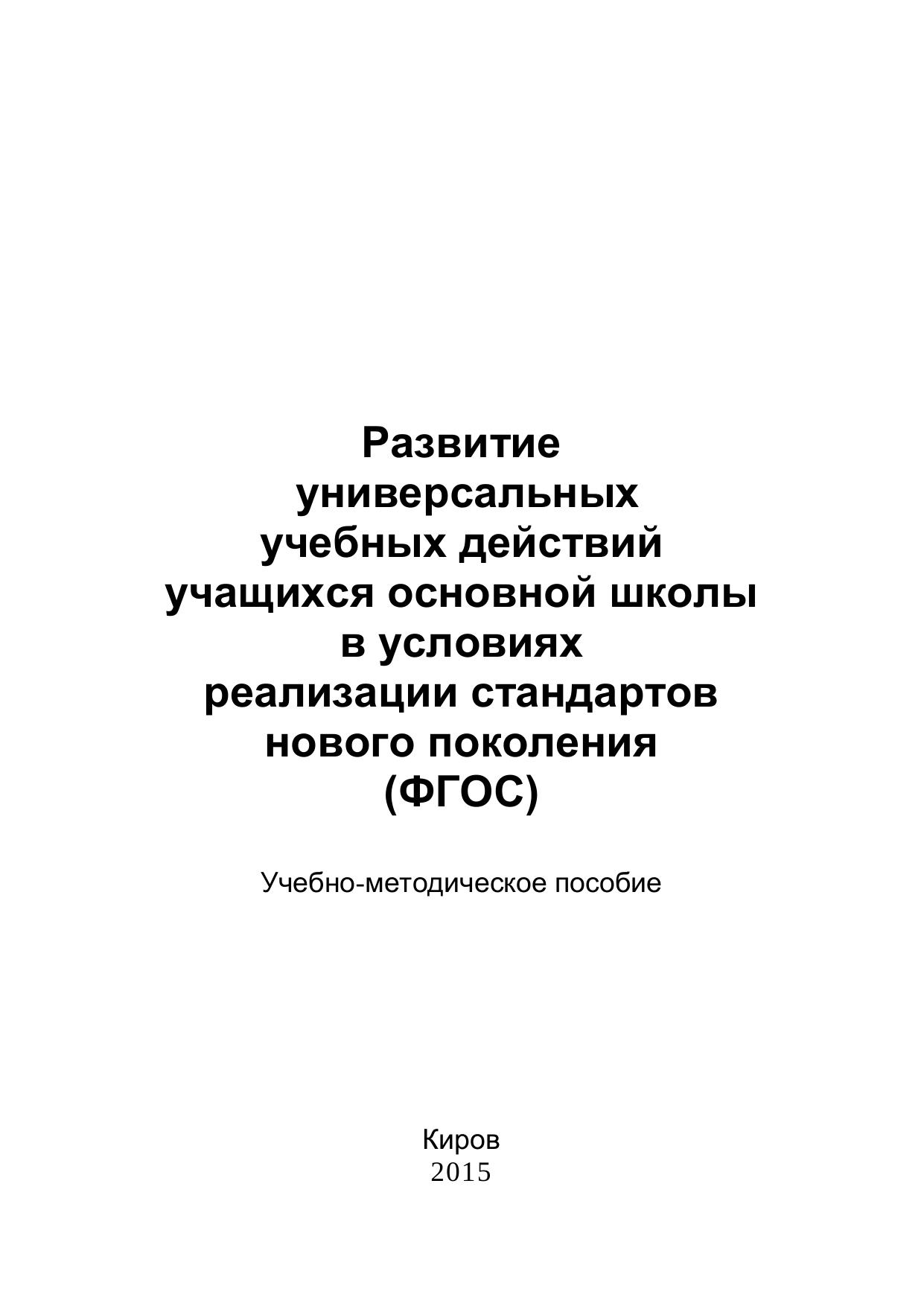 Развитие универсальных учебных действий учащихся основной школы в условиях реализации стандартов нового поколения (ФГОС)