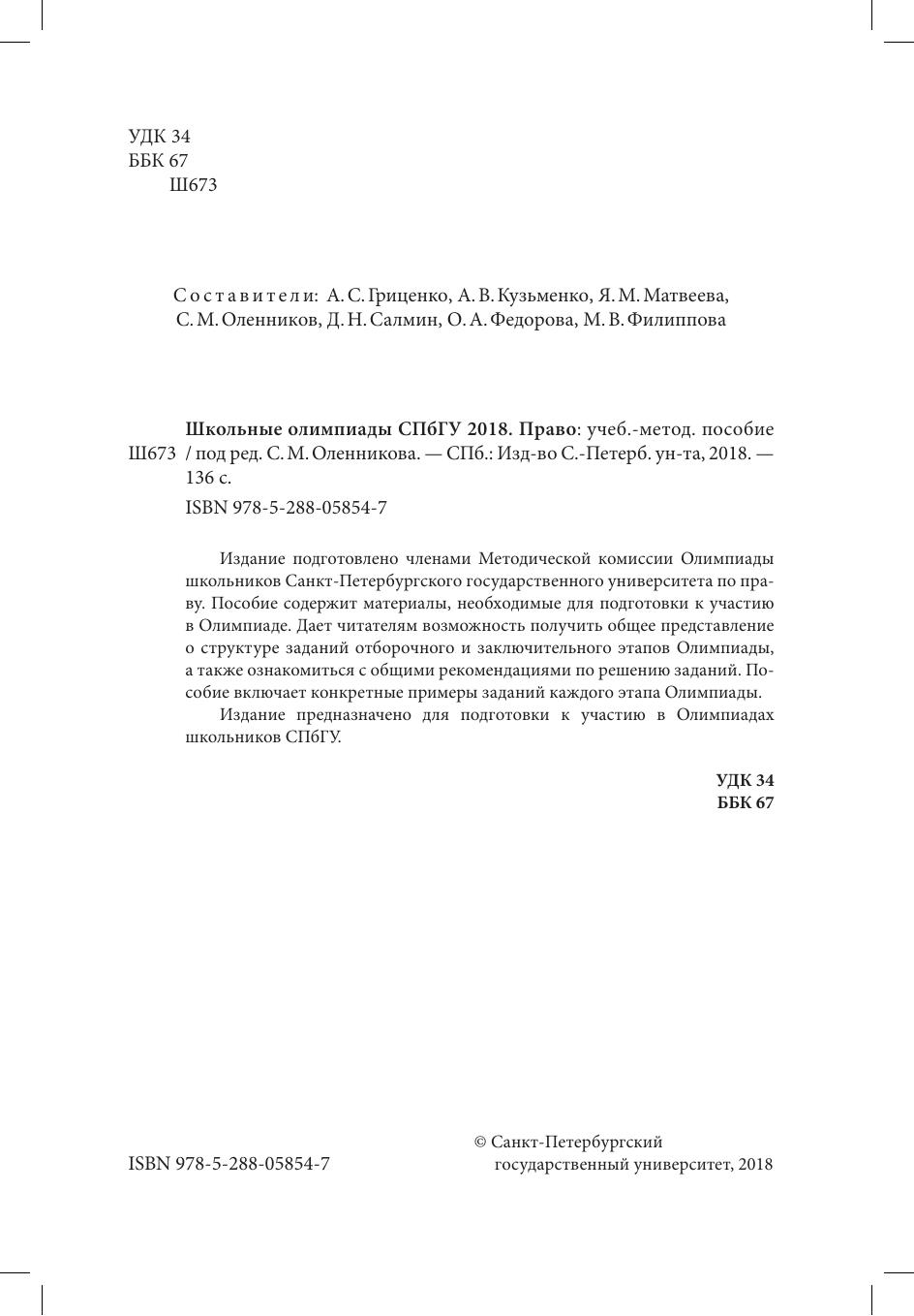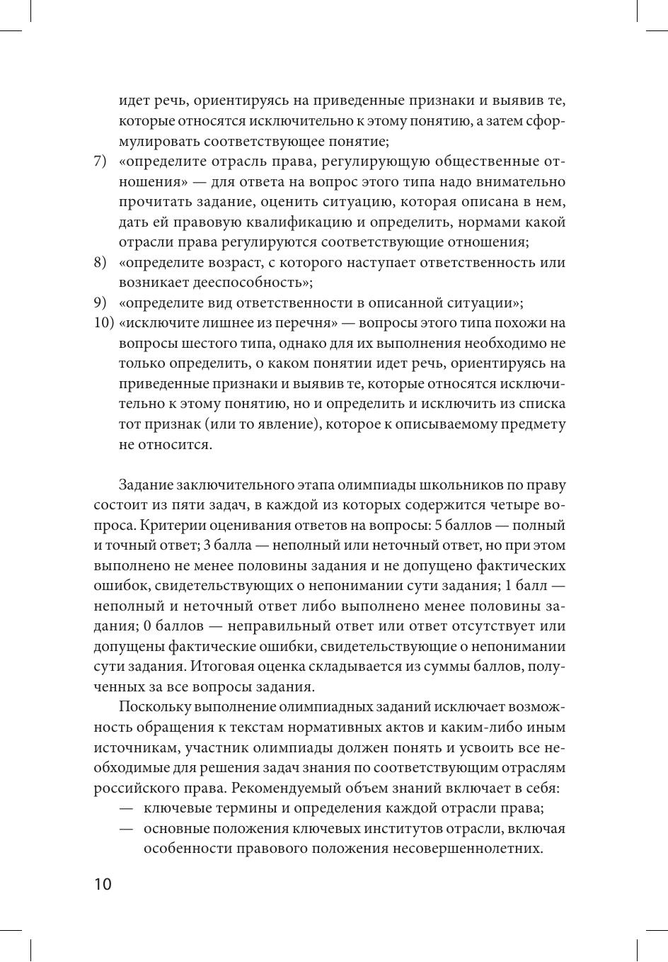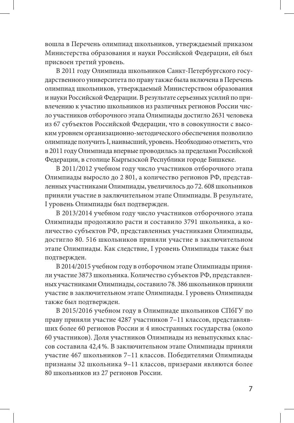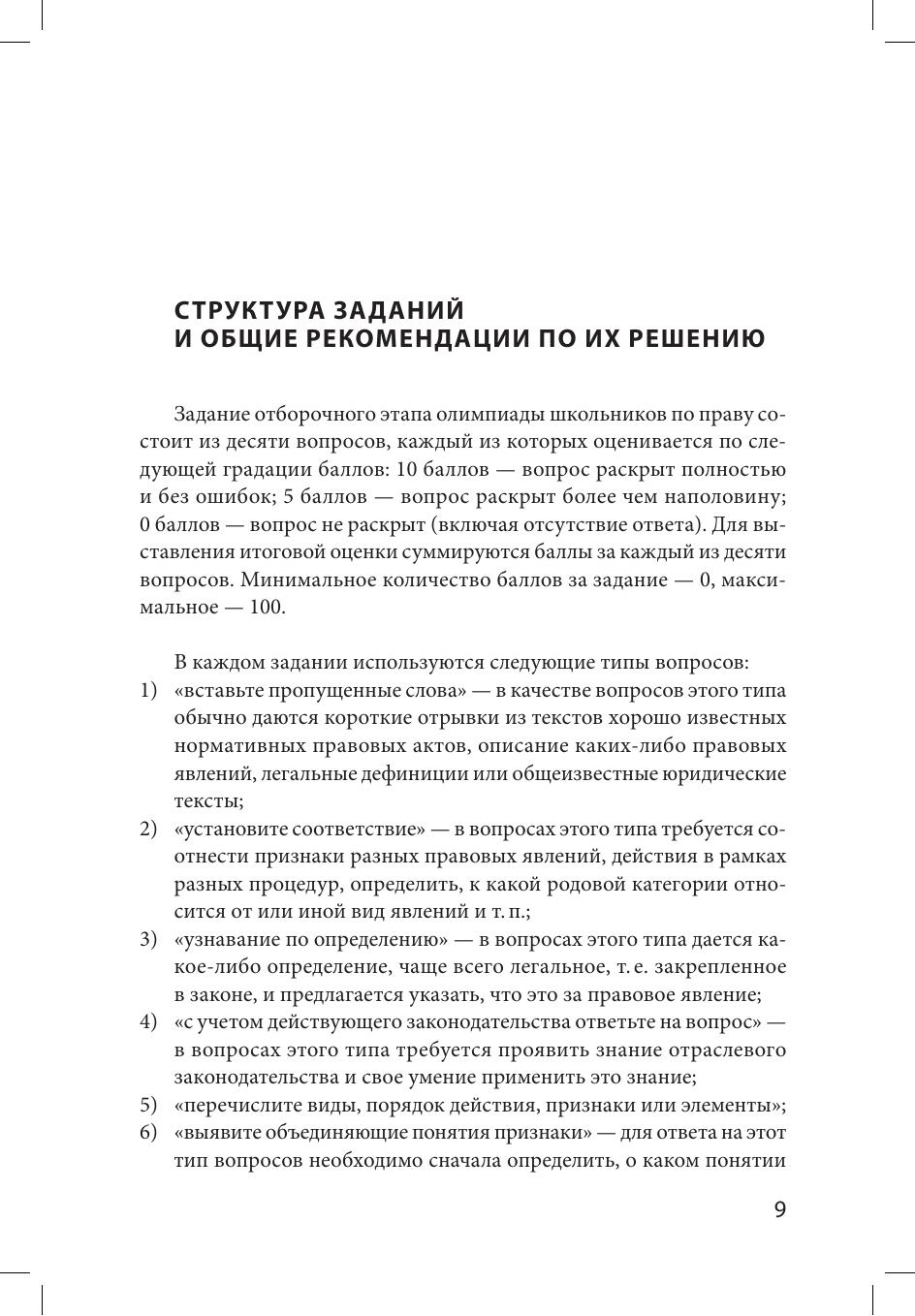 Издание подготовлено членами Методической комиссии Олимпиады школьников Санкт-Петербургского государственного университета по праву. Пособие содержит материалы, необходимые для подготовки к участию в Олимпиаде. Дает читателям возможность получить общее представление о структуре заданий отборочного и заключительного этапов Олимпиады, а также ознакомиться с общими рекомендациями по решению заданий. Пособие включает конкретные примеры заданий каждого этапа Олимпиады. Издание предназначено для подготовки к участию в Олимпиадах школьников СПбГУ.