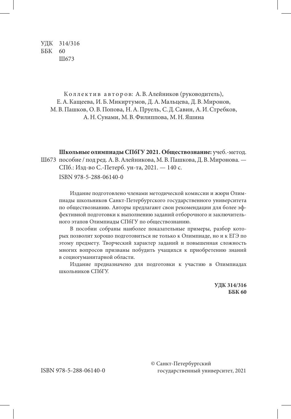 Издание подготовлено членами методической комиссии и жюри Олимпиады школьников Санкт-Петербургского государственного университета по обществознанию. Авторы предлагают свои рекомендации для более эффективной подготовки к выполнению отборочного и заключительного этапов Олимпиады СПбГУ по обществознанию. В пособии собраны наиболее показательные примеры, разбор которых позволит хорошо подготовиться не только к Олимпиаде, но и к ЕГЭ по этому предмету. Творческий характер заданий и повышенная сложность многих вопросов призваны побудить учащихся к приобретению знаний в социогуманитарной области.