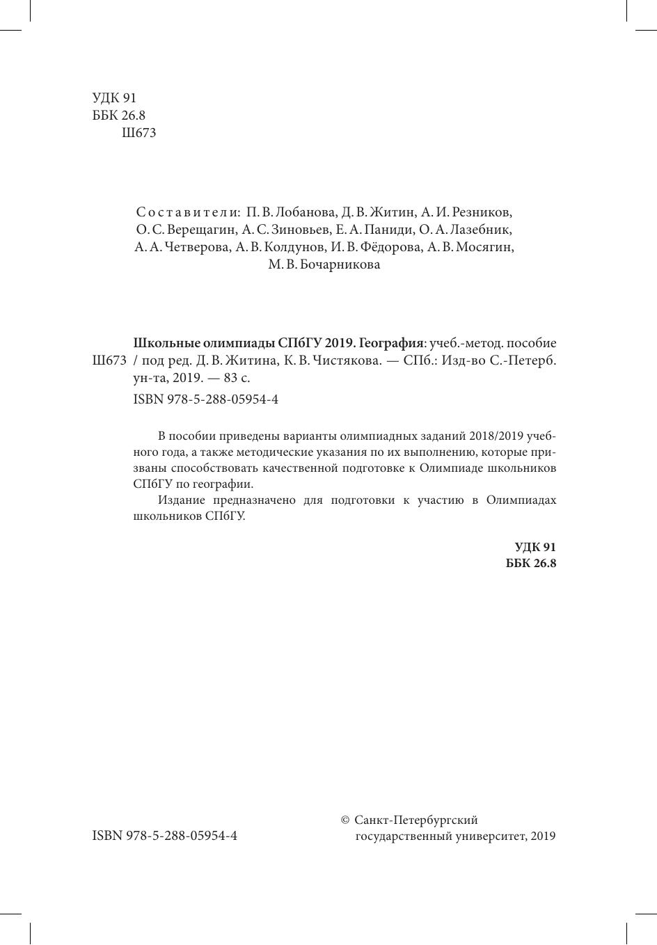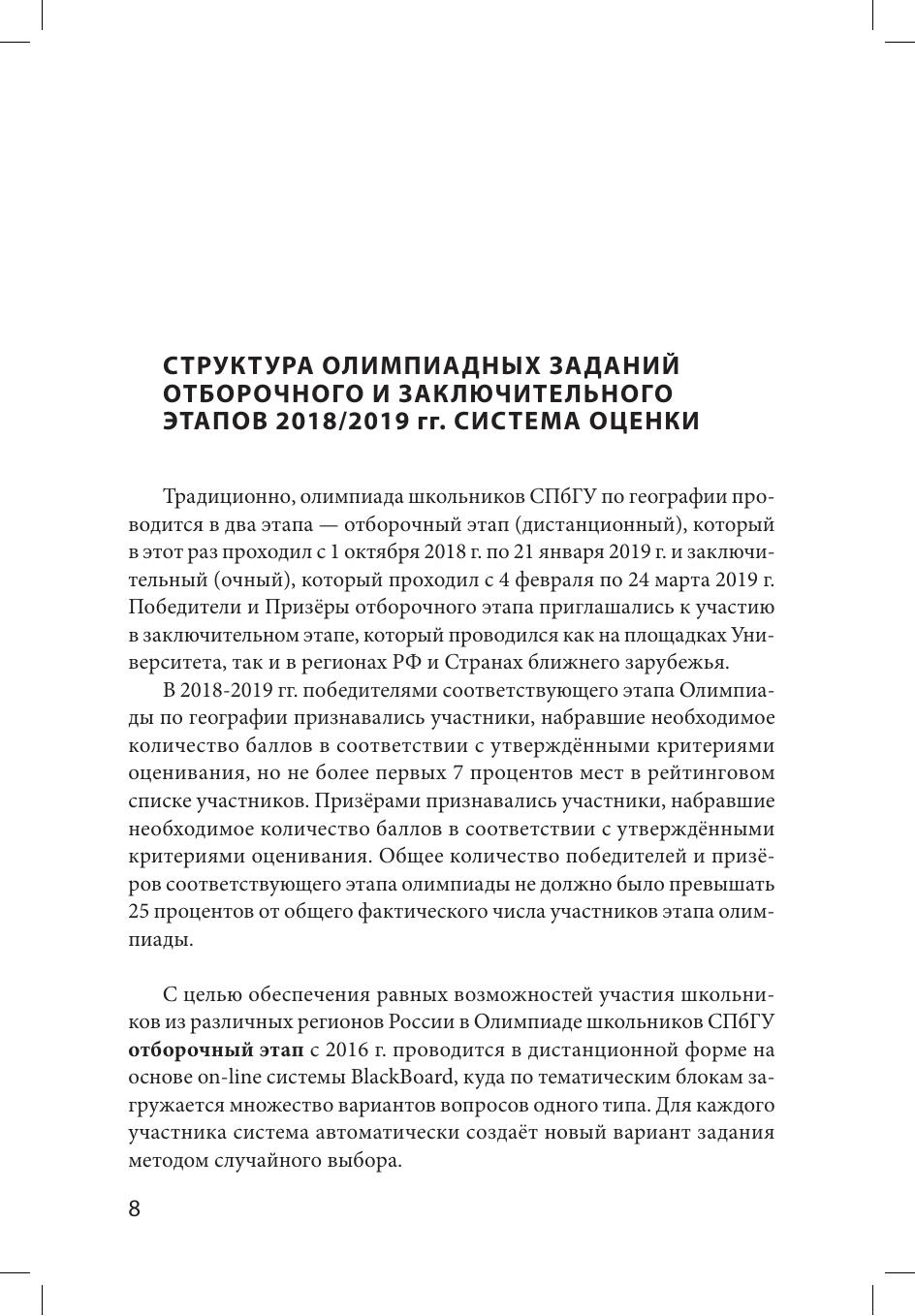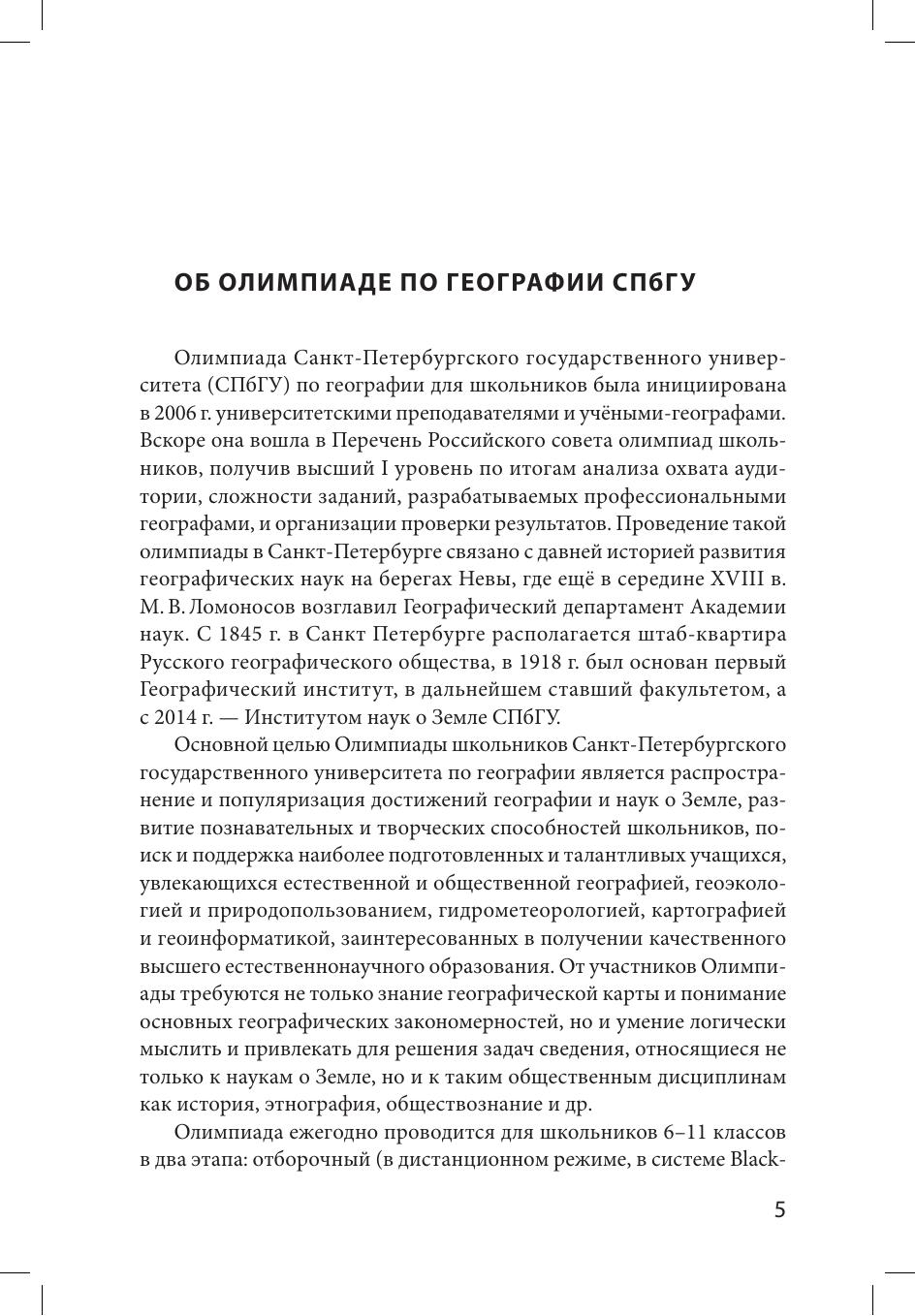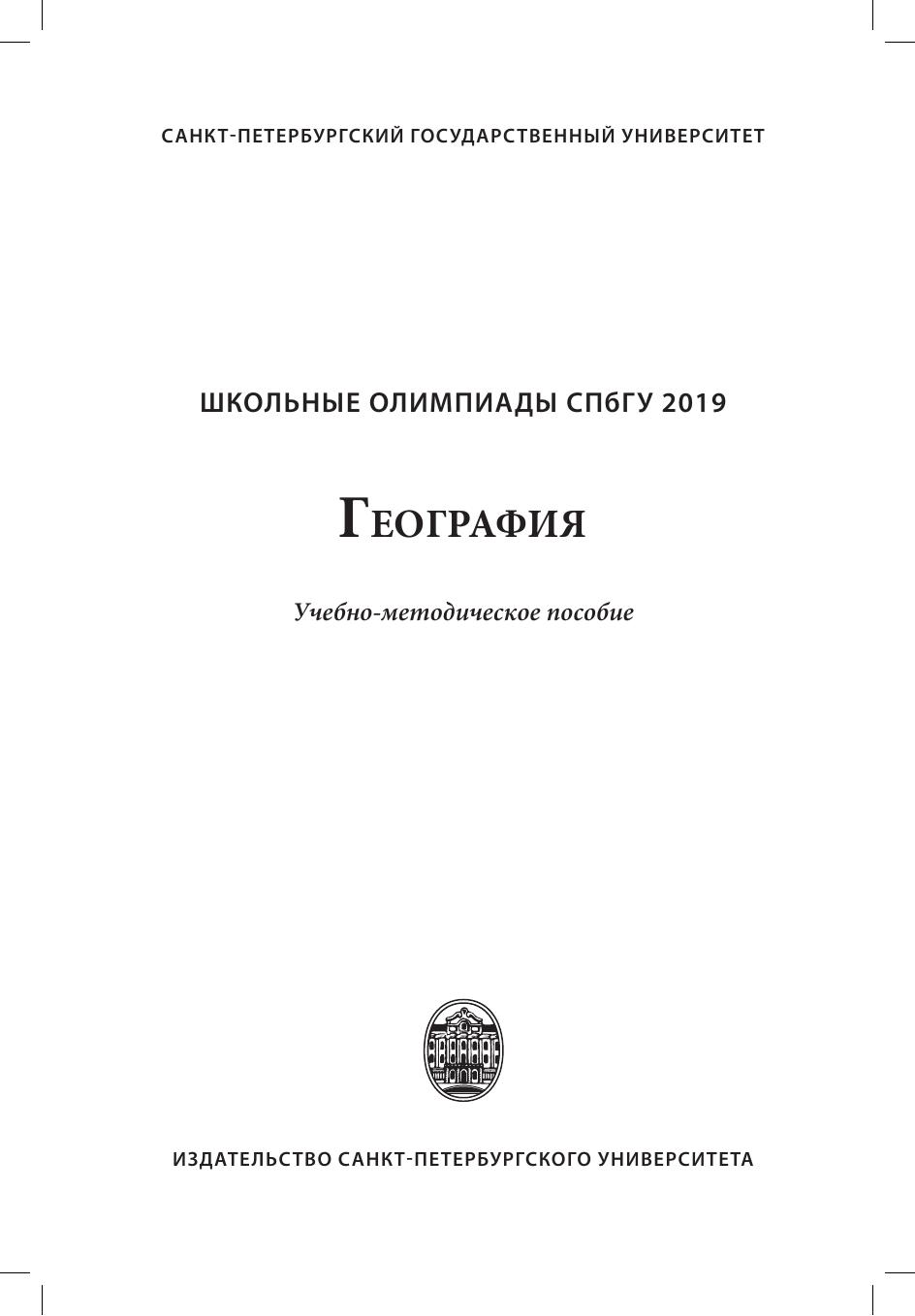 В пособии приведены варианты олимпиадных заданий 2018/2019 учебного года, а также методические указания по их выполнению, которые призваны способствовать качественной подготовке к Олимпиаде школьников СПбГУ по географии. Издание предназначено для подготовки к участию в Олимпиадах школьников СПбГУ.