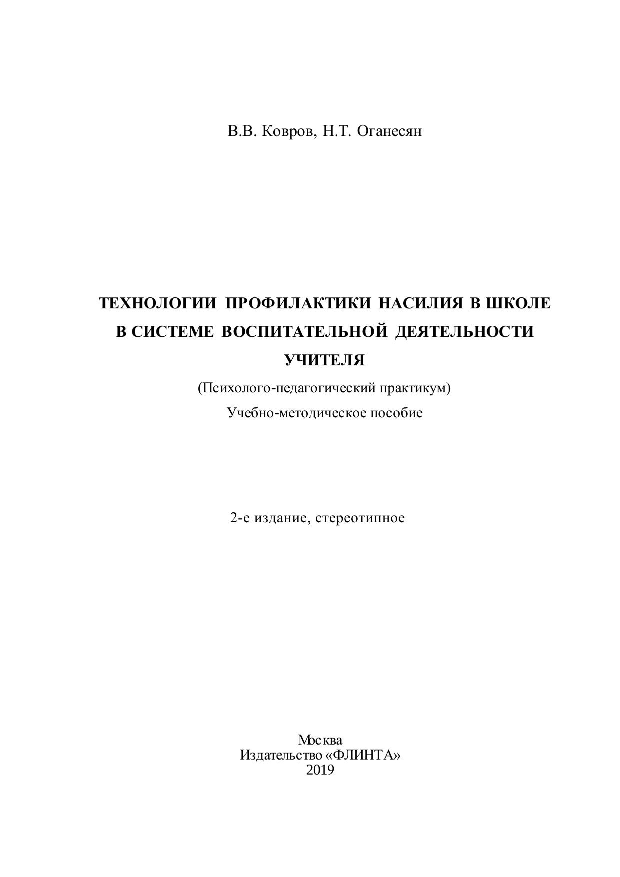 Технологии профилактики насилия в школе в системе воспитательной деятельности учителя (Психолого-педагогический практикум)