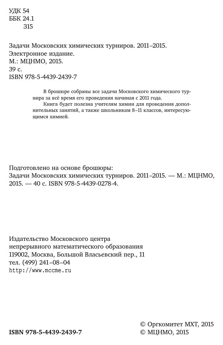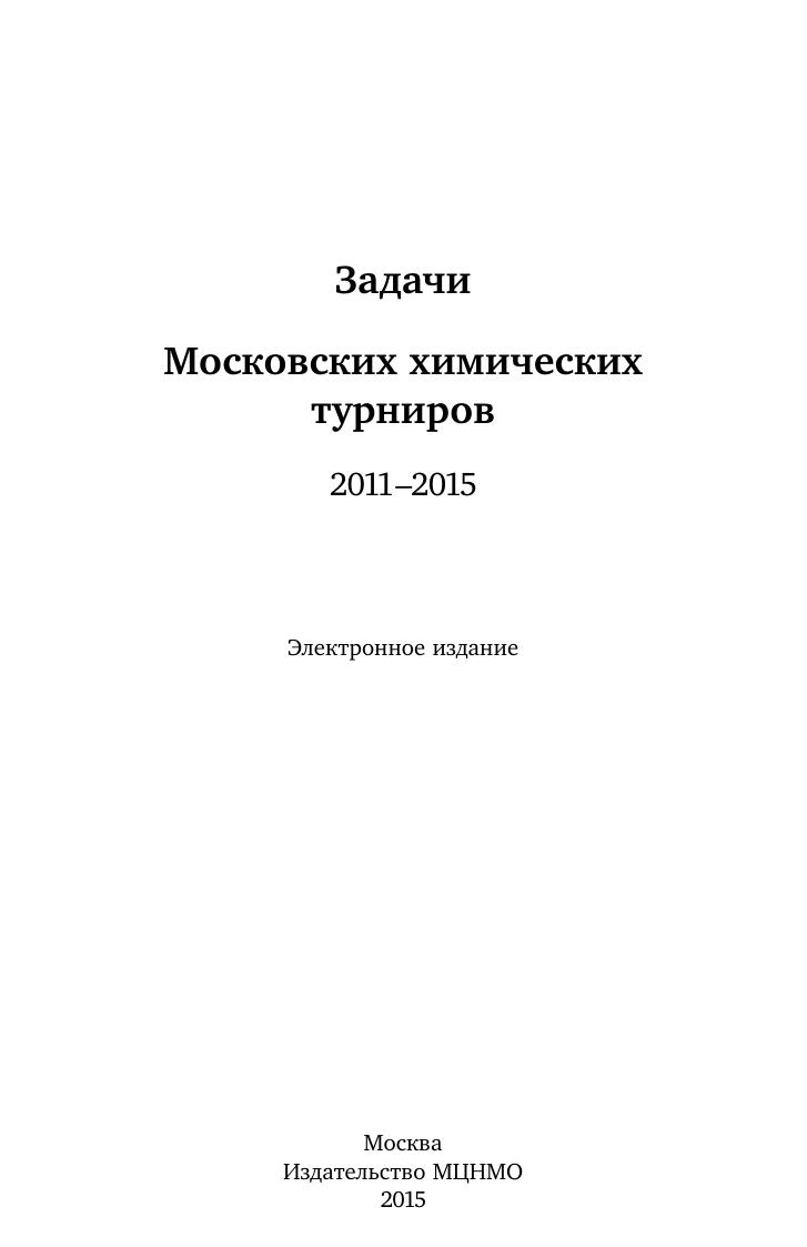 Задачи Московских химических турниров. 2011–2015