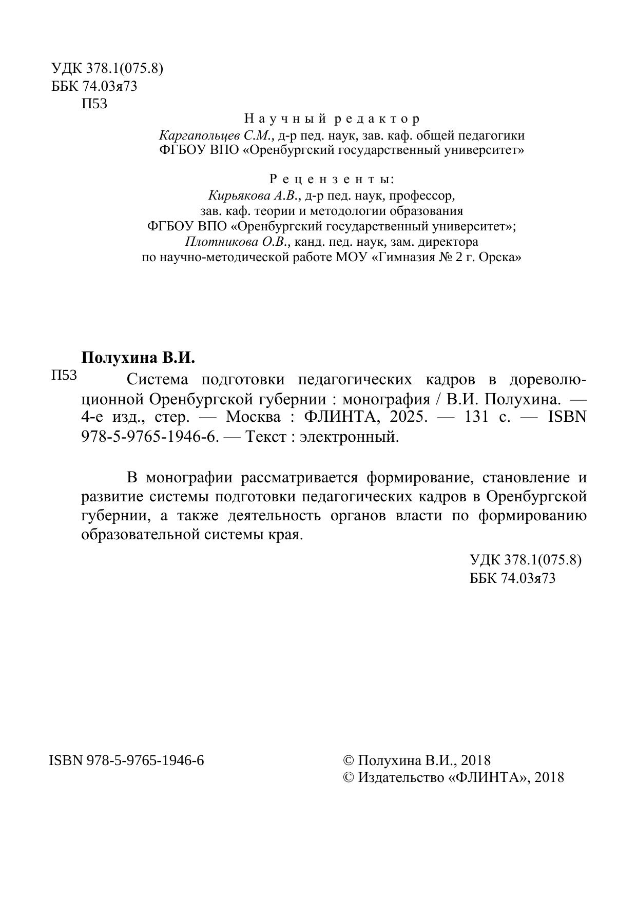 В монографии рассматривается формирование, становление и развитие системы подготовки педагогических кадров в Оренбургской губернии, а также деятельность органов власти по формированию образовательной системы края.