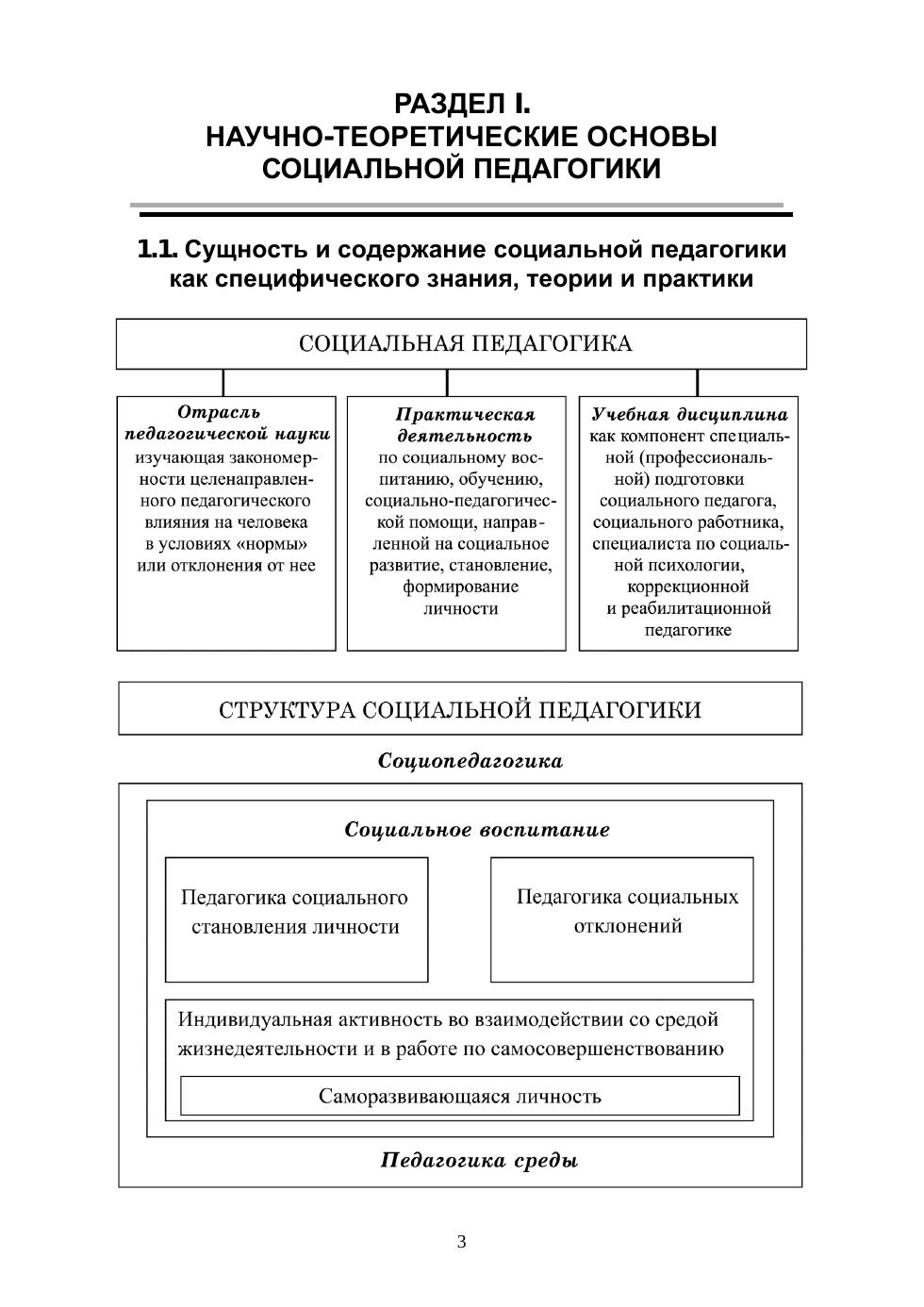 Учебный курс «Социальная педагогика» относится к базовой части дисциплин профессионального цикла подготовки педагогов. В пособии рассматриваются основные темы курса, такие как социальная педагогика как наука, воспитание и социальное воспитание, социализация как социально-педагогическое явление, современная семья и ее проблемы, социально-педагогическая деятельность с детьми-сиротами и детьми, оставшимися без попечения родителей, профессиональная деятельность социального педагога. Настоящее пособие может использоваться для самостоятельной работы студентов как иллюстративный материал к теоретическим лекциям и семинарским занятиям, как концентрированное изложение самой сути дисциплины при подготовке к экзамену, а также в условиях дистанционного обучения. Предлагаемое учебное пособие предназначено для бакалавров, обучающихся на педагогических и гуманитарных факультетах по направлениям подготовки «Педагогическое образование», «Психология и педагогика девиантного поведения», «Социальная работа» и смежных с ними, а также для курсантов и слушателей высших учебных заведений МВД РФ.