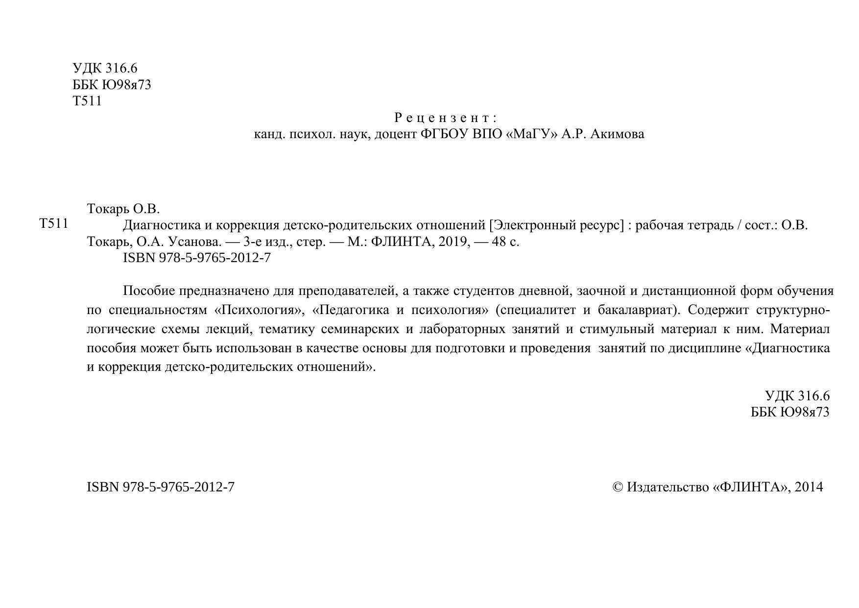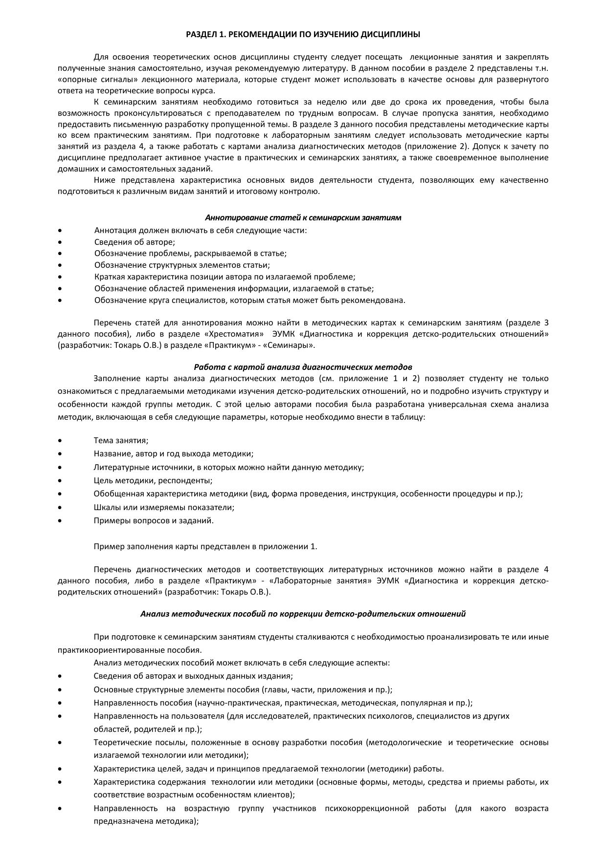 Пособие предназначено для преподавателей, а также студентов дневной, заочной и дистанционной форм обучения по специальностям «Психология», «Педагогика и психология» (специалитет и бакалавриат). Содержит структурно-логические схемы лекций, тематику семинарских и лабораторных занятий и стимульный материал к ним. Материал пособия может быть использован в качестве основы для подготовки и проведения занятий по дисциплине «Диагностика и коррекция детско-родительских отношений».