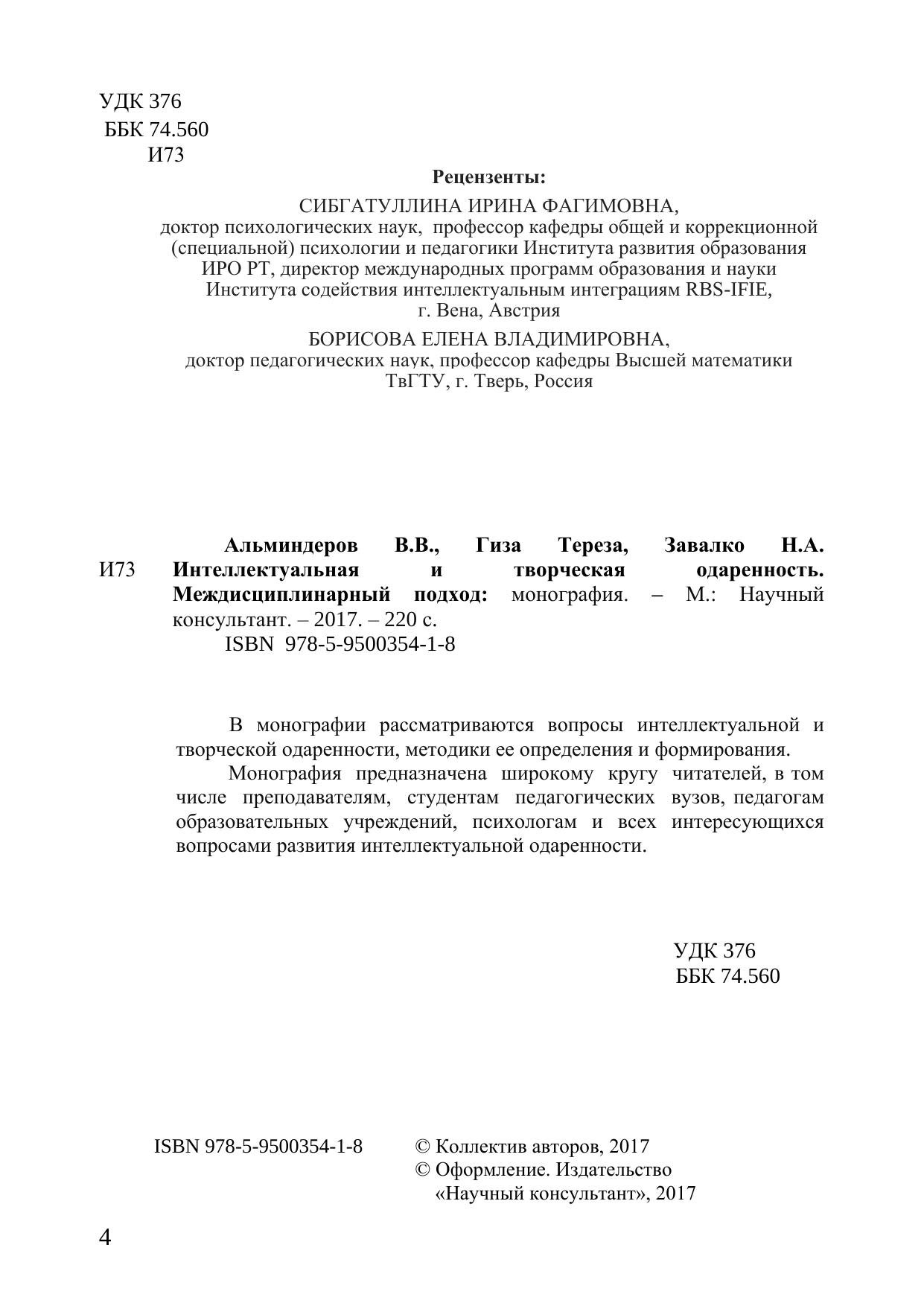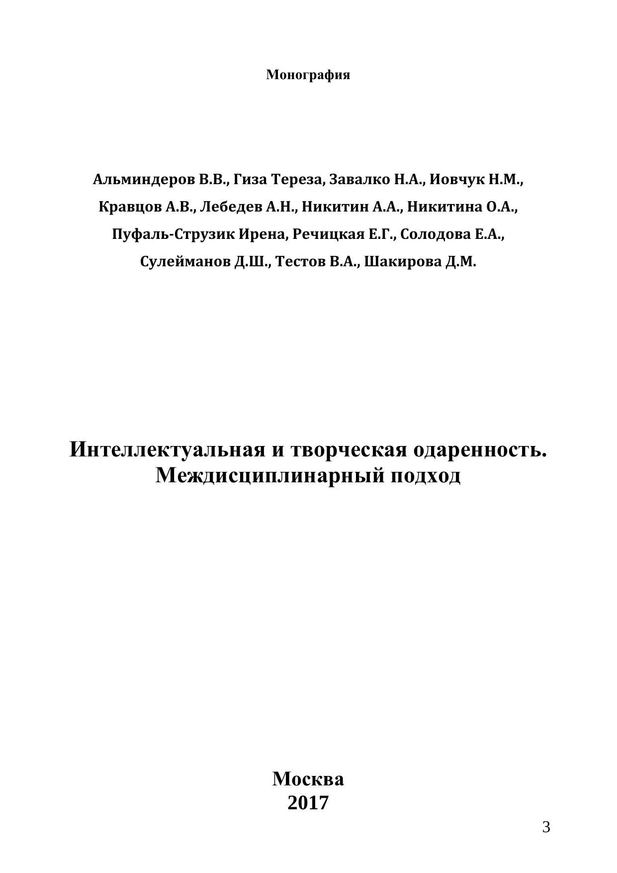 Интеллектуальная и творческая одаренность. Междисциплинарный подход
