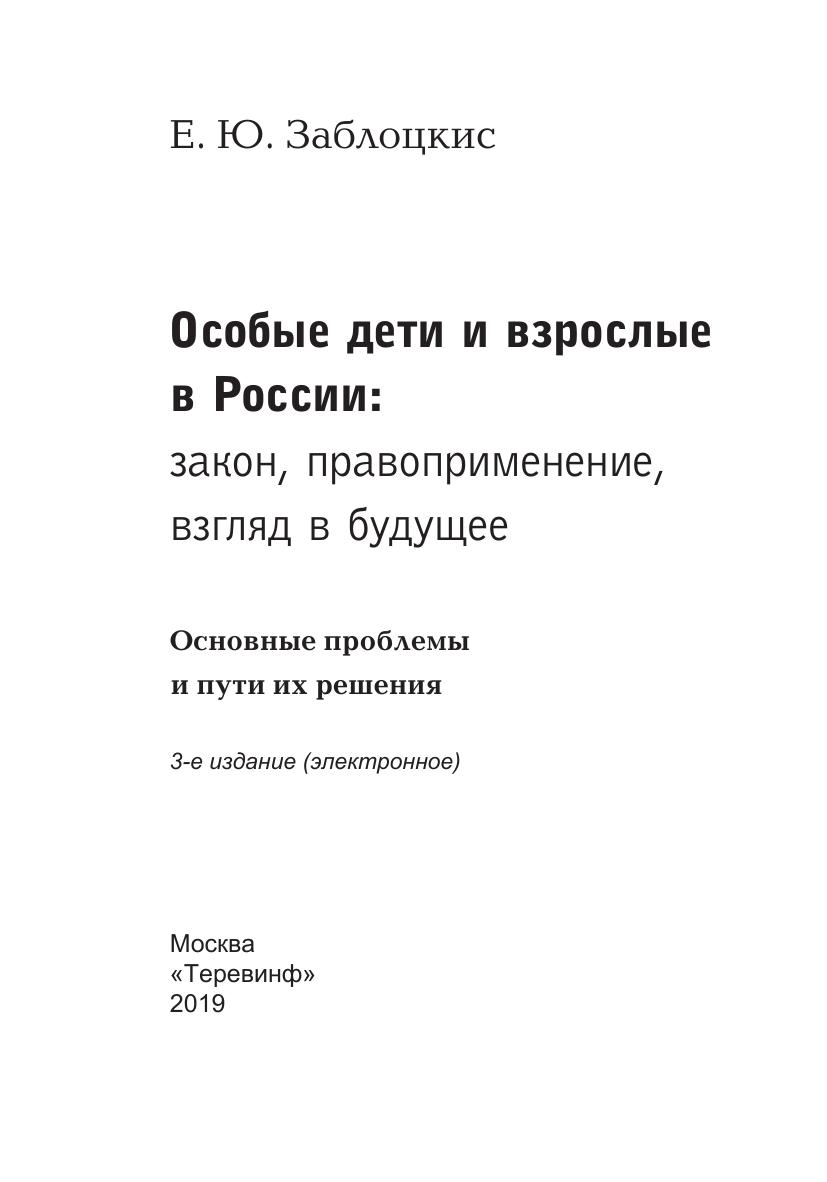 Особые дети и взрослые в России: закон, правоприменение, взгляд в будущее. Основные проблемы и пути решения