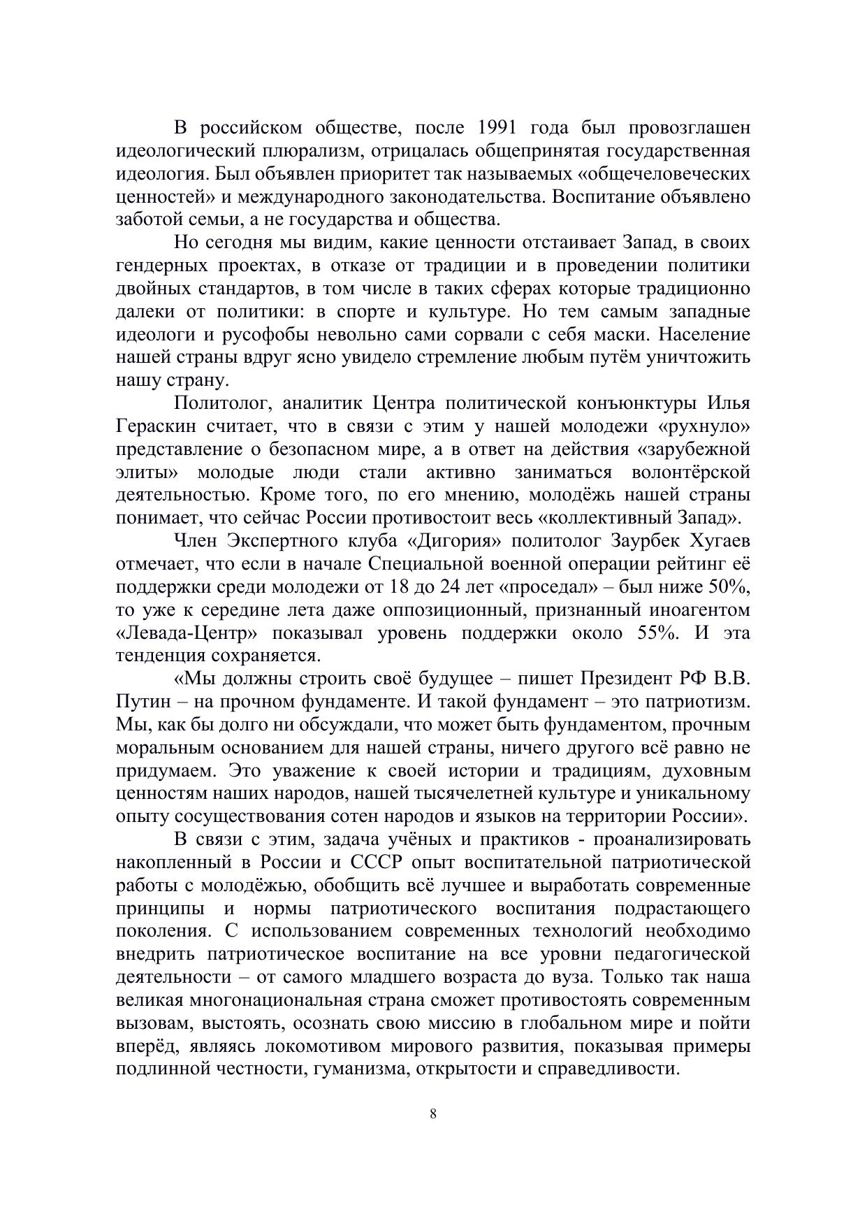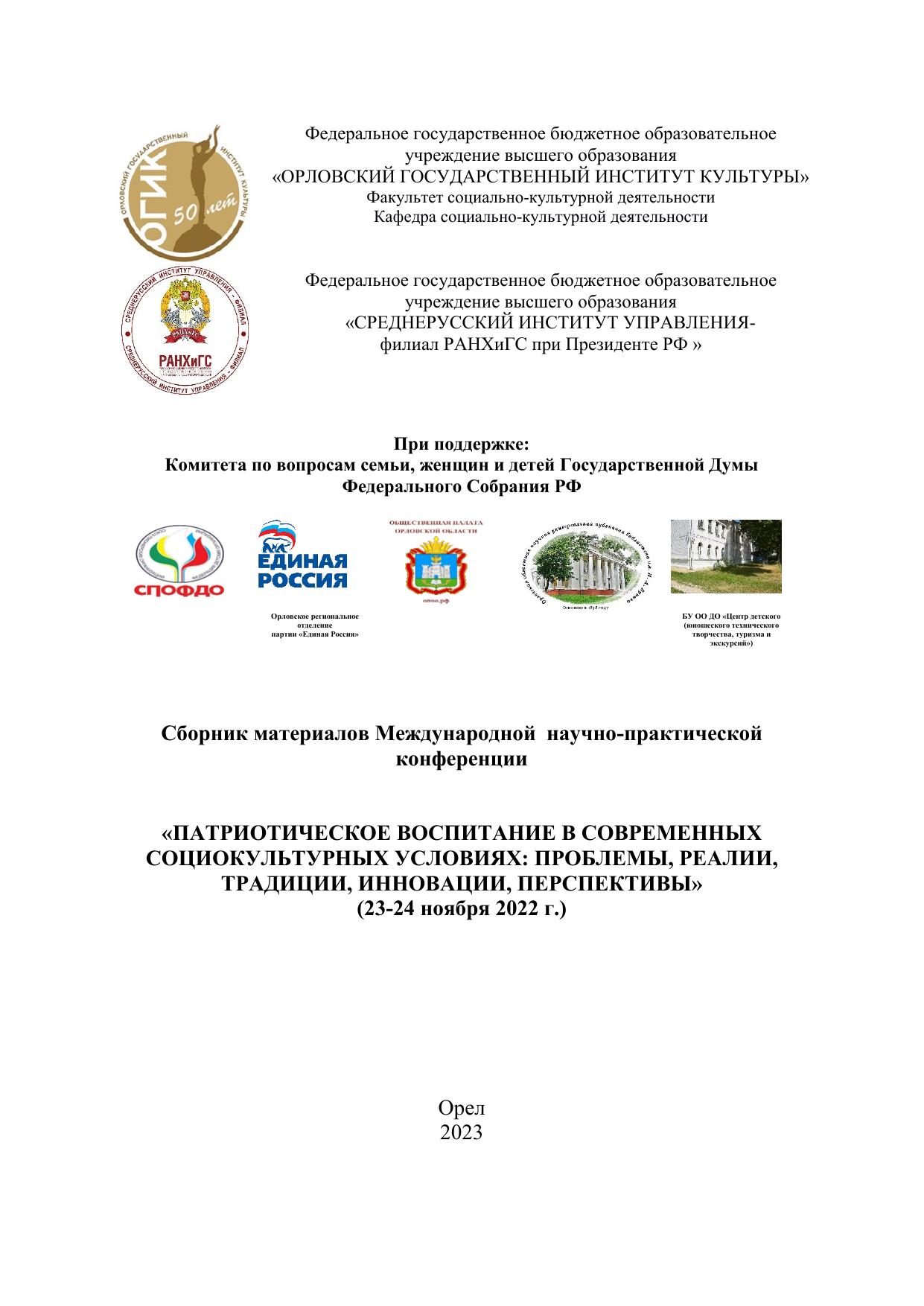 Патриотическое воспитание в современных социокультурных условиях: проблемы, реалии, традиции, инновации, перспективы: Материалы Всероссийской научно-практической конференции (23- 24 ноября 2022 г.).