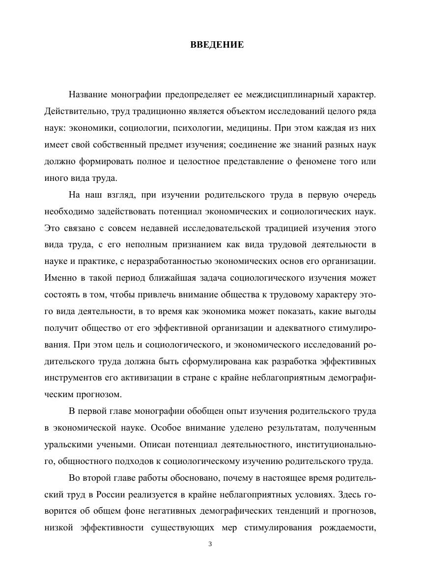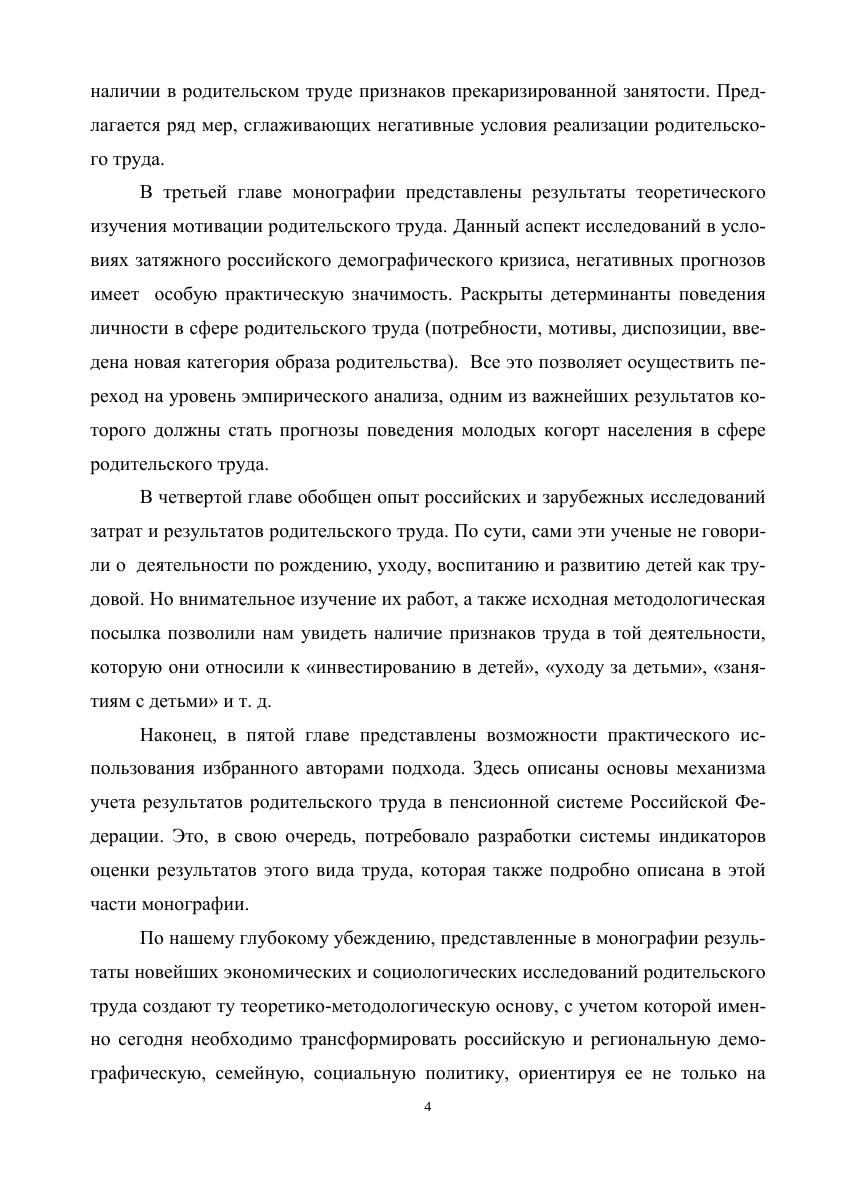 Монография посвящена социологическому и экономическому анализу важнейших аспектов родительского труда: условий его реализации, мотивации субъектов этого труда, результатов труда. Приводятся результаты теоретических и эмпирических исследований. Состоит из пяти глав, которые отражают междисциплинарный подход к анализу феномена родительского труда в рамках социологической и экономической наук. Книга рассчитана на студентов социологических, экономических, управленческих специальностей, научных и практических работников сферы государственного и муниципального управления, занятых реализацией семейной, демографической, социальной политики, а также преподавателей и аспирантов.