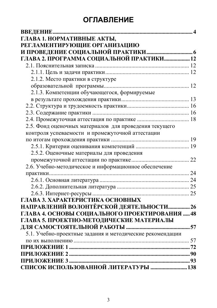 Учебная практика (социальная) является обязательной частью профессиональной подготовки студентов направления «Педагогическое образование» и рассматривается как одна из важных форм связи процесса обучения в вузе с будущей практической деятельностью. В ходе практики наиболее интенсивно протекают процессы накопления, сохранения, логического переструктурирования приобретенных знаний, их проецирование на практическую деятельность. С освоением программ практики связывается подлинная профессиональная подготовка, обращенная к социально-педагогической реальности. Данное пособие включает программу практики, краткую характеристику основных направлений волонтерской деятельности, теоретические основы социального проекти-рования, содержание учебно-проектных заданий и методические рекомендации по их выполнению. Пособие предназначено для студентов вузов педагогической направленно-сти для организации и прохождения учебной практики «Социальная практика».