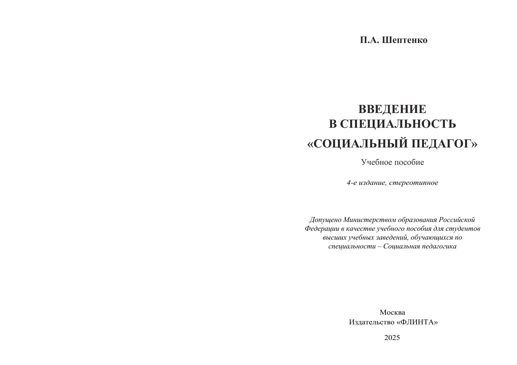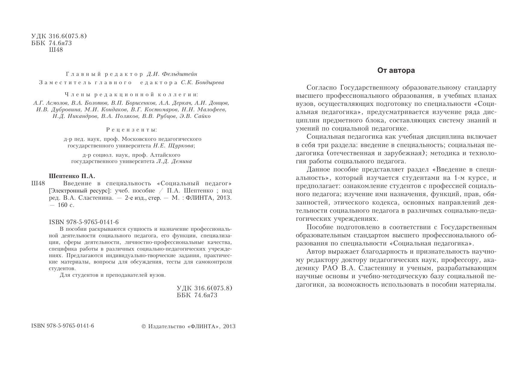Введение в специальность "Социальный педагог"