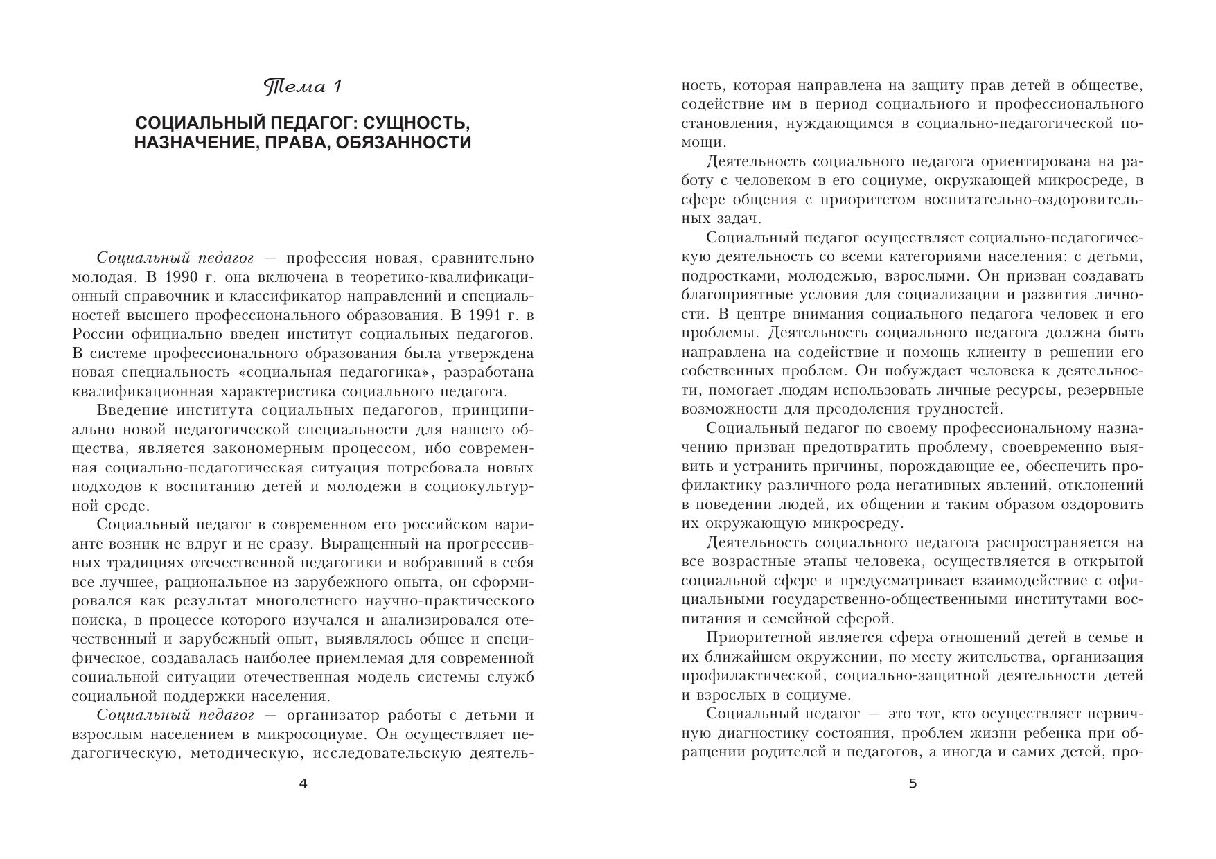 В пособии раскрываются сущность и назначение профессиональной деятельности социального педагога, его функции, специализации, сферы деятельности, личностно-профессиональные качества, специфика работы в различных социально-педагогических учреждениях. Предлагаются индивидуально-творческие задания, практические материалы, вопросы для обсуждения, тесты для самоконтроля студентов. Для студентов и преподавателей вузов.