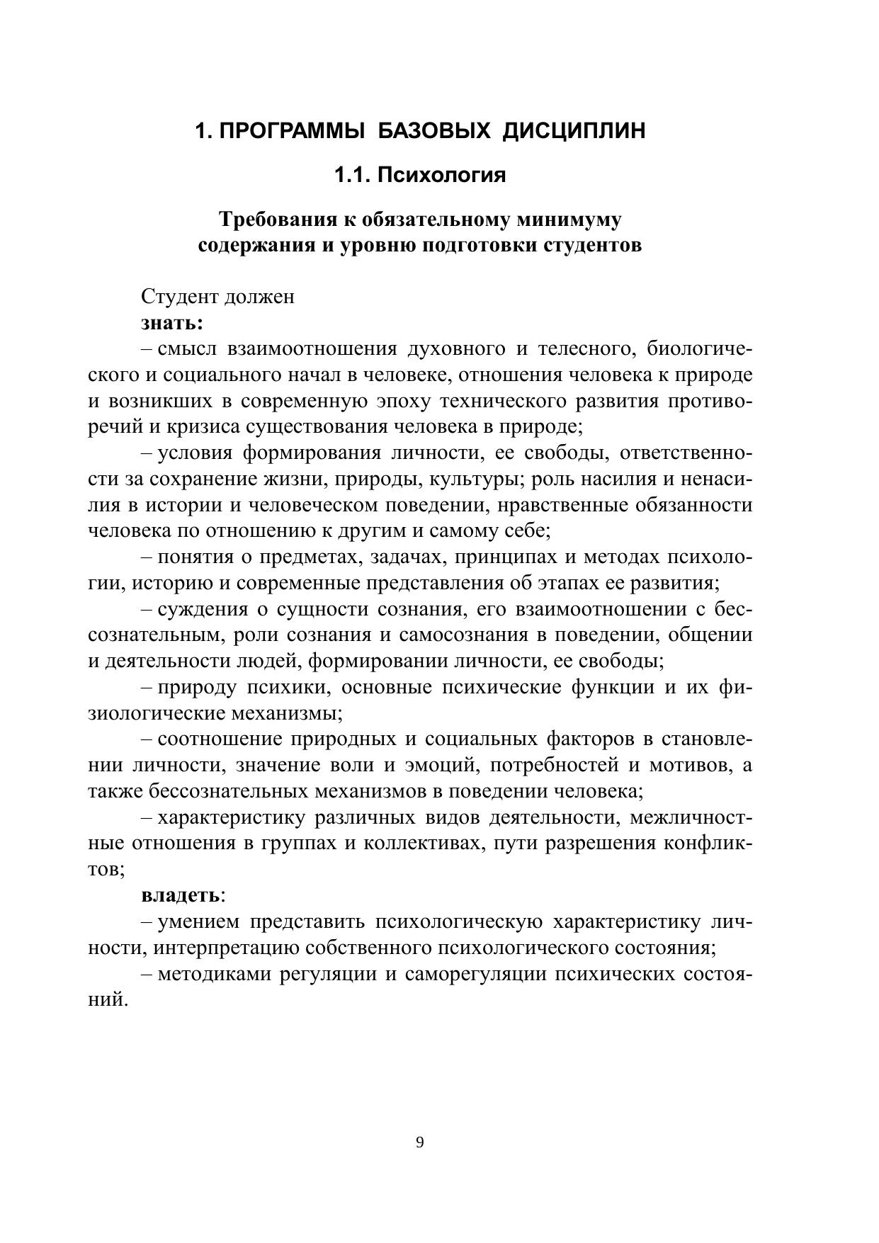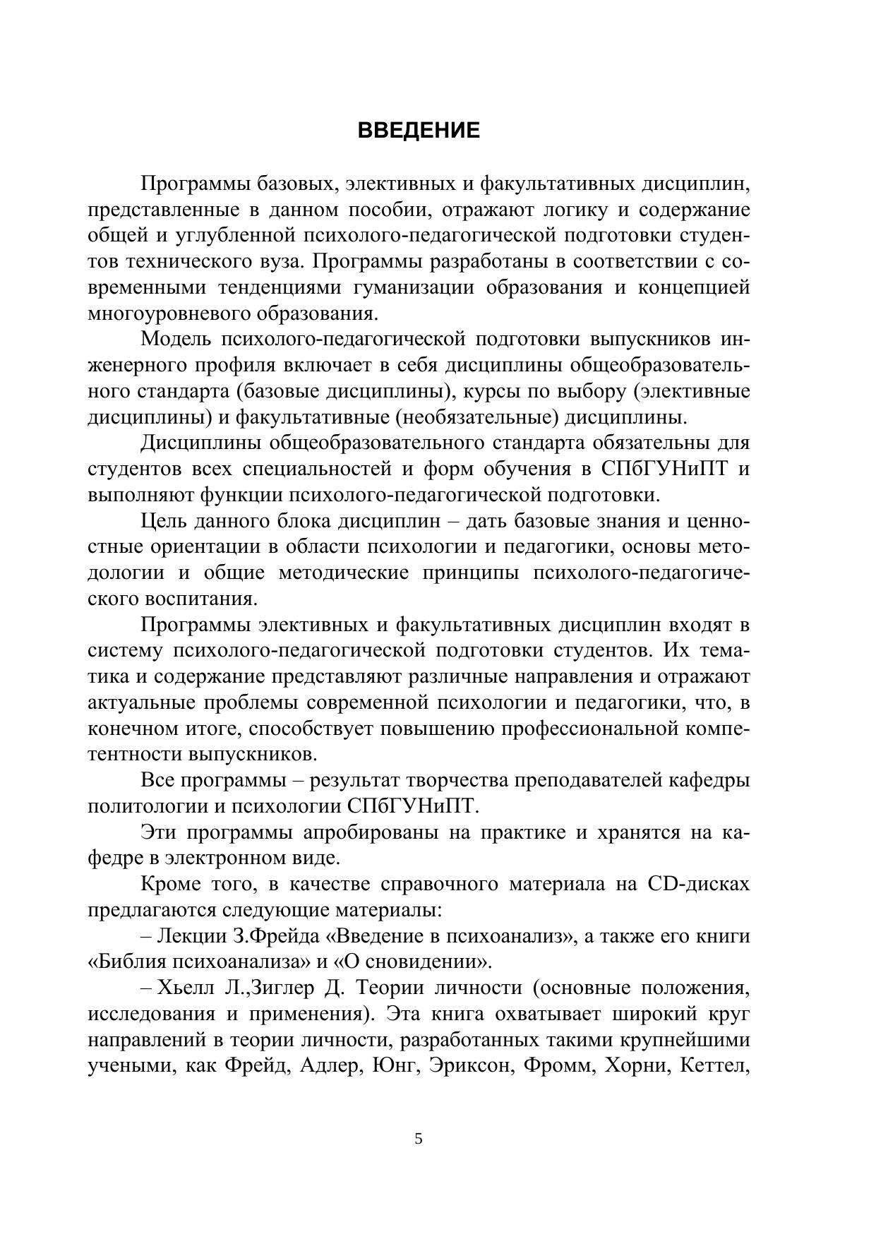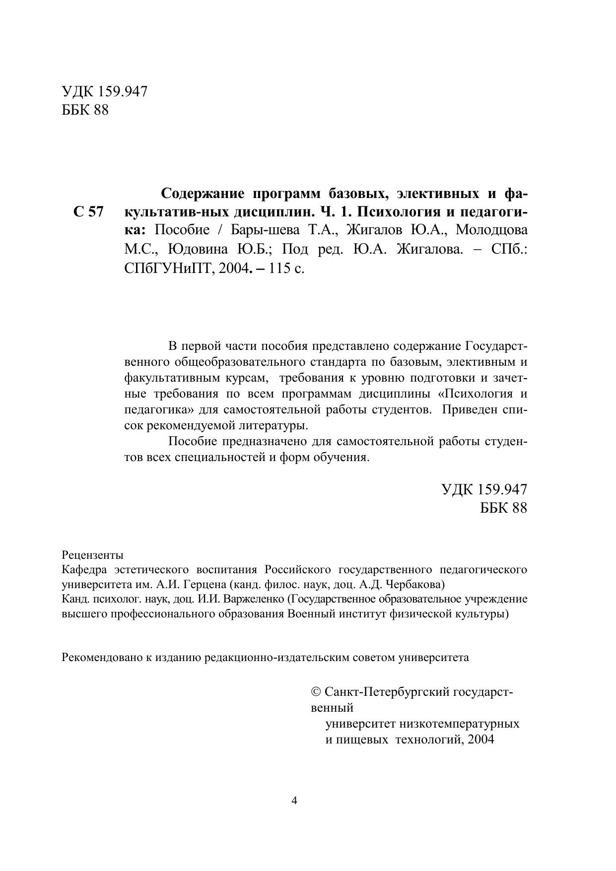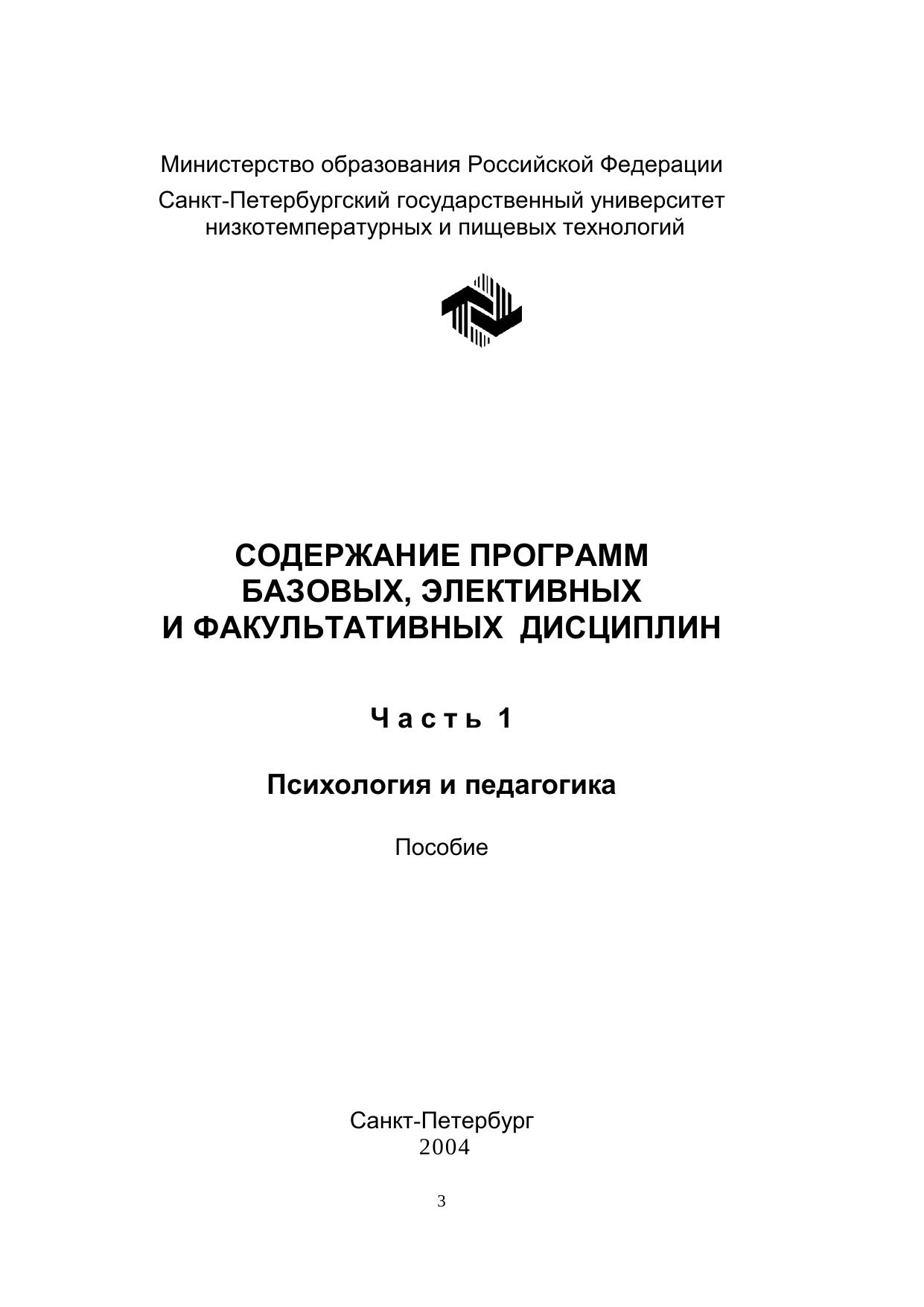 Содержание программ базовых, элективных и факультативных дисциплин. Ч. 1. Психология и педагогика