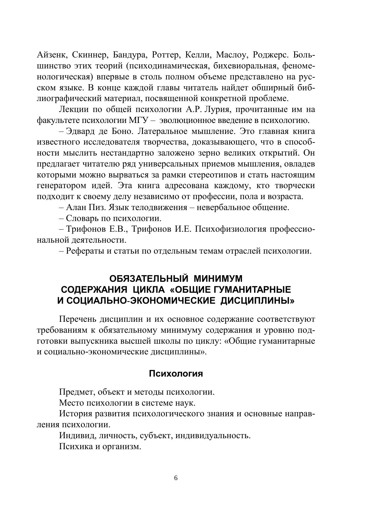 В первой части пособия представлено содержание Государственного общеобразовательного стандарта по базовым, элективным и факультативным курсам, требования к уровню подготовки и зачетные требования по всем программам дисциплины «Психология и педагогика» для самостоятельной работы студентов. Приведен список рекомендуемой литературы. Пособие предназначено для самостоятельной работы студентов всех специальностей и форм обучения.