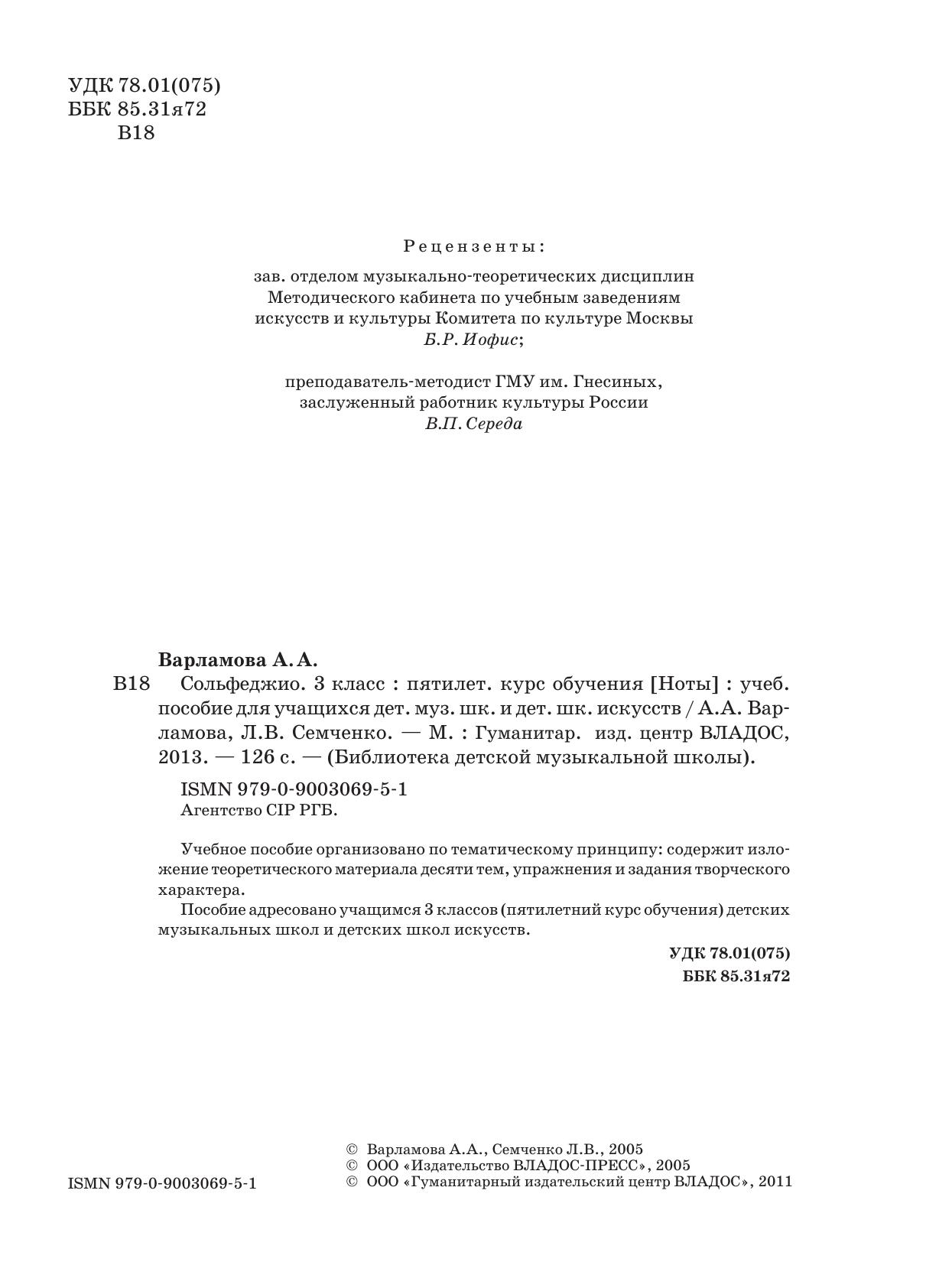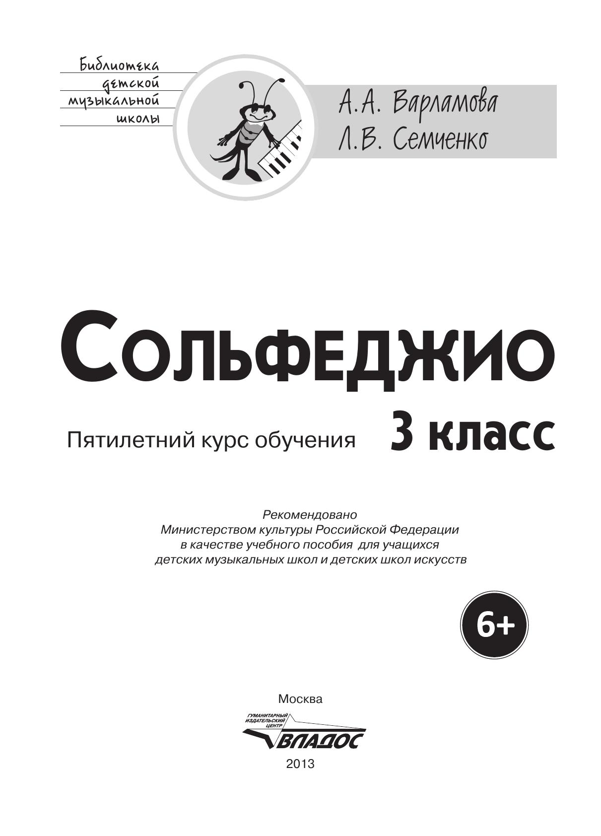 Сольфеджио. 3 класс : пятилет. курс обучения [Ноты]: учебное пособие для учащихся дет. муз. шк. и дет. шк. искусств