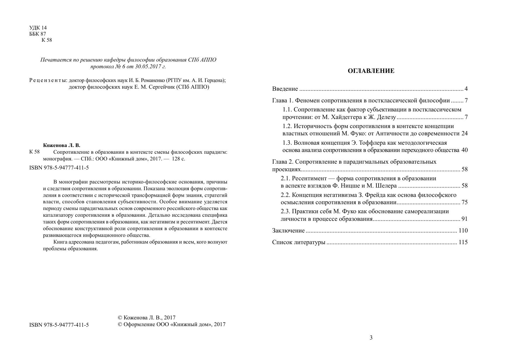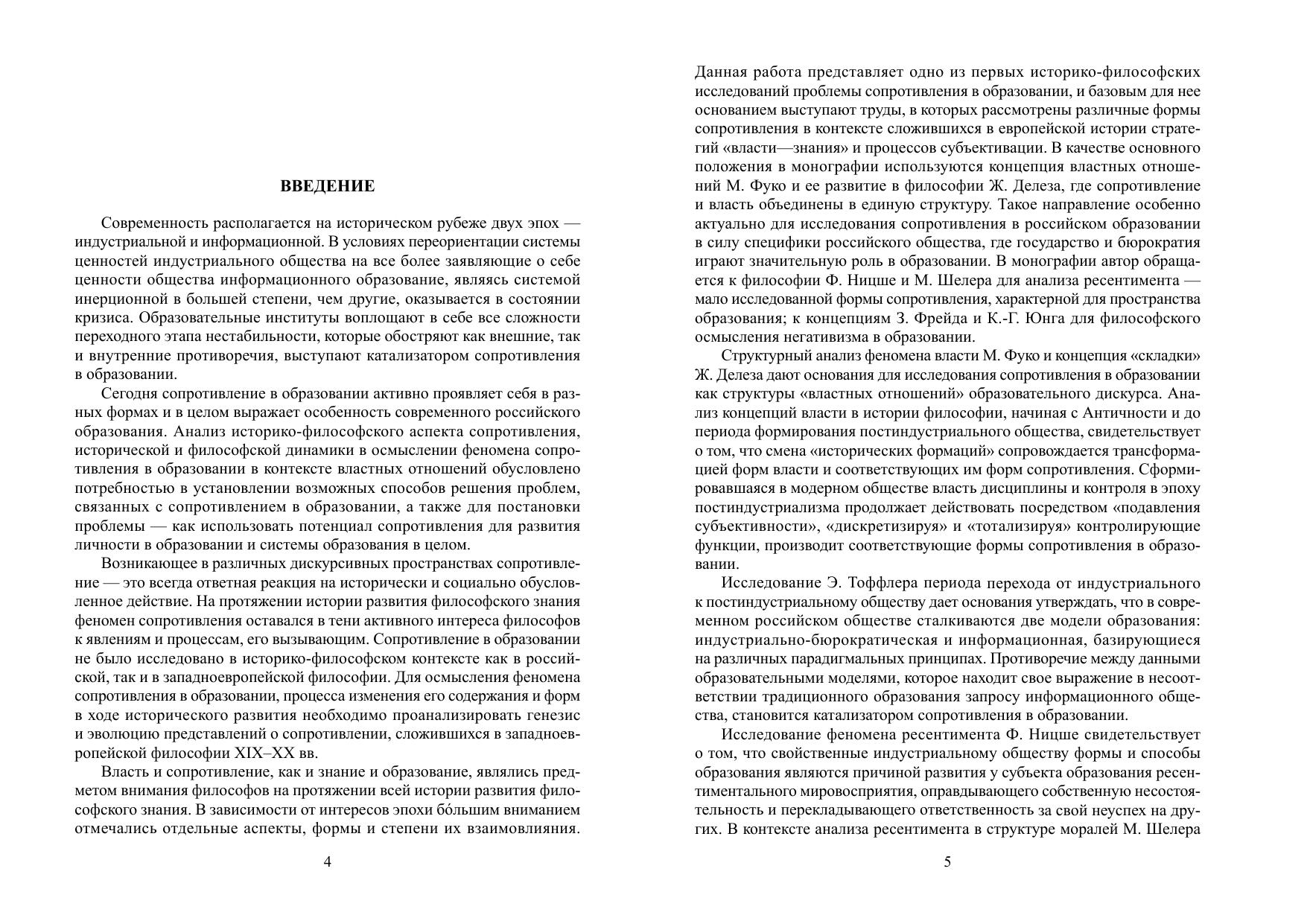 В монографии рассмотрены историко-философские основания, причины и следствия сопротивления в образовании. Показана эволюция форм сопротивления в соответствии с исторической трансформацией форм знания, стратегий власти, способов становления субъективности. Особое внимание уделяется периоду смены парадигмальных основ современного российского общества как катализатору сопротивления в образовании. Детально исследована специфика таких форм сопротивления в образовании, как негативизм и ресентимент. Дается обоснование конструктивной роли сопротивления в образовании в контексте развивающегося информационного общества. Книга адресована педагогам, работникам образования и всем, кого волнуют проблемы образования.