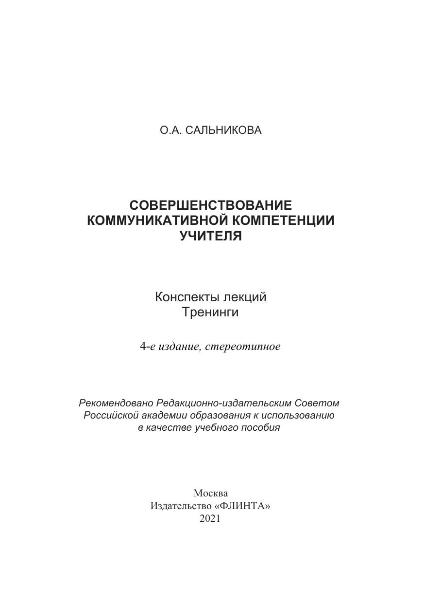 Совершенствование коммуникативной компетенции учителя: конспекты лекций, тренинги