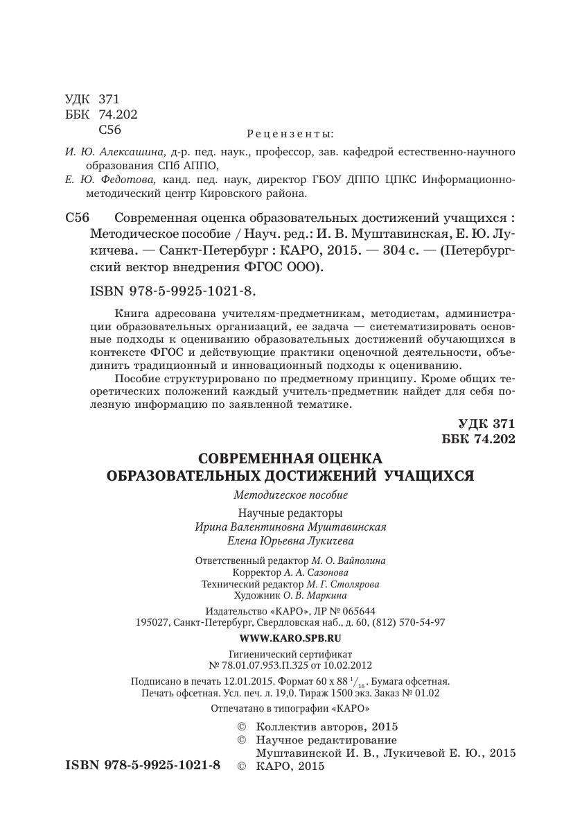 Книга адресована учителям-предметникам, методистам, администрации образовательных организаций, ее задача — систематизировать основные подходы к оцениванию образовательных достижений обучающихся в контексте ФГОС и действующие практики оценочной деятельности, объединить традиционный и инновационный подходы к оцениванию.