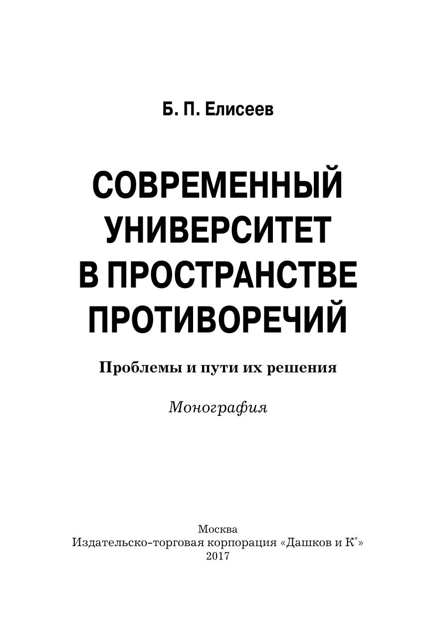 Современный университет в пространстве противоречий. Проблемы и пути их решения