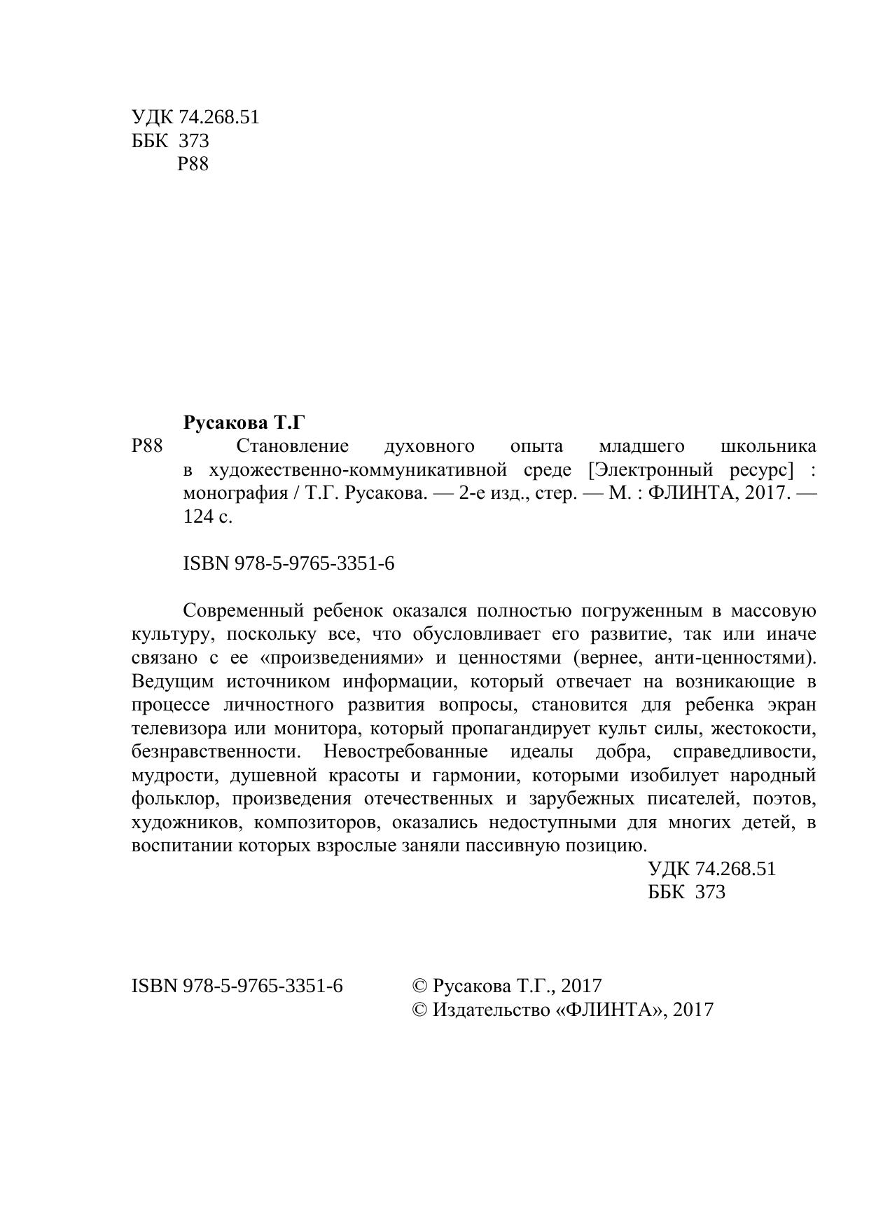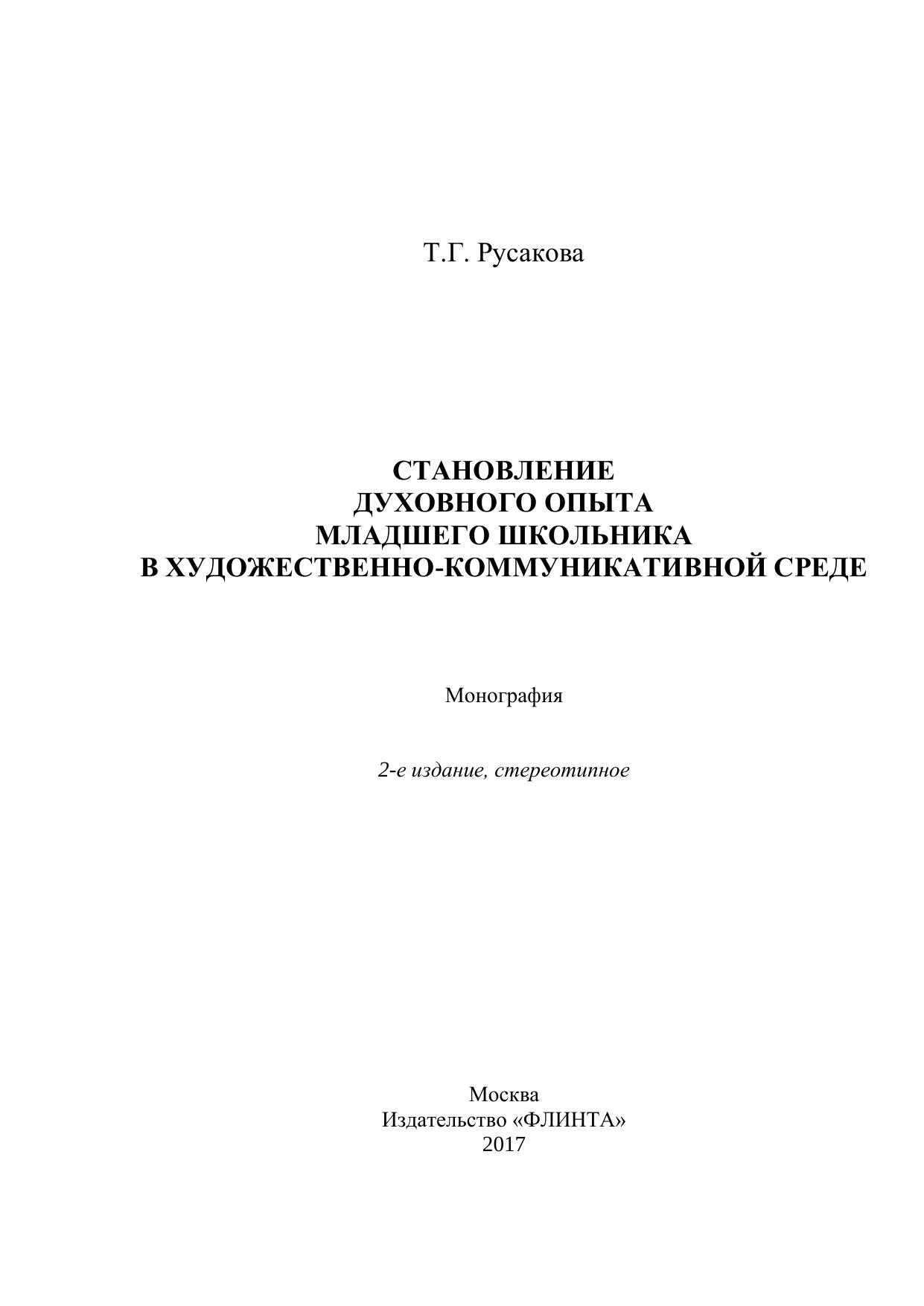 Становление духовного опыта младшего школьника в художественно-коммуникативной среде: монография