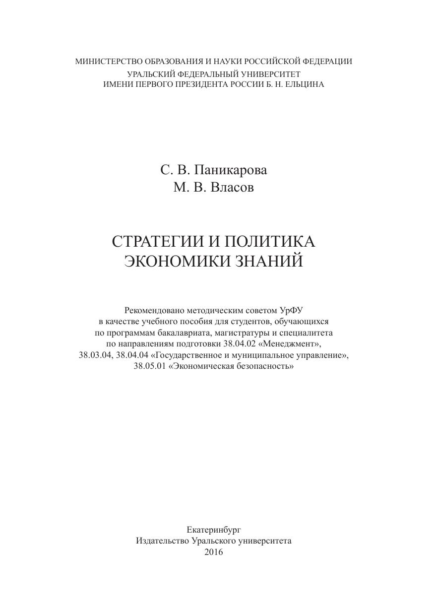 Стратегии и политика экономики знаний: учеб. пособие