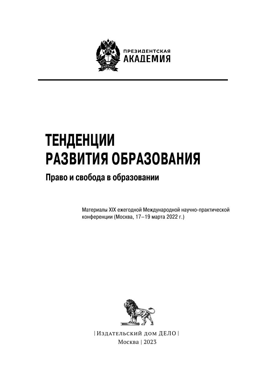 Тенденции развития образования. Право и свобода в образовании: материалы XIX ежегодной Международной научно-практической конференции (Москва, 17–19 марта 2022 г.)
