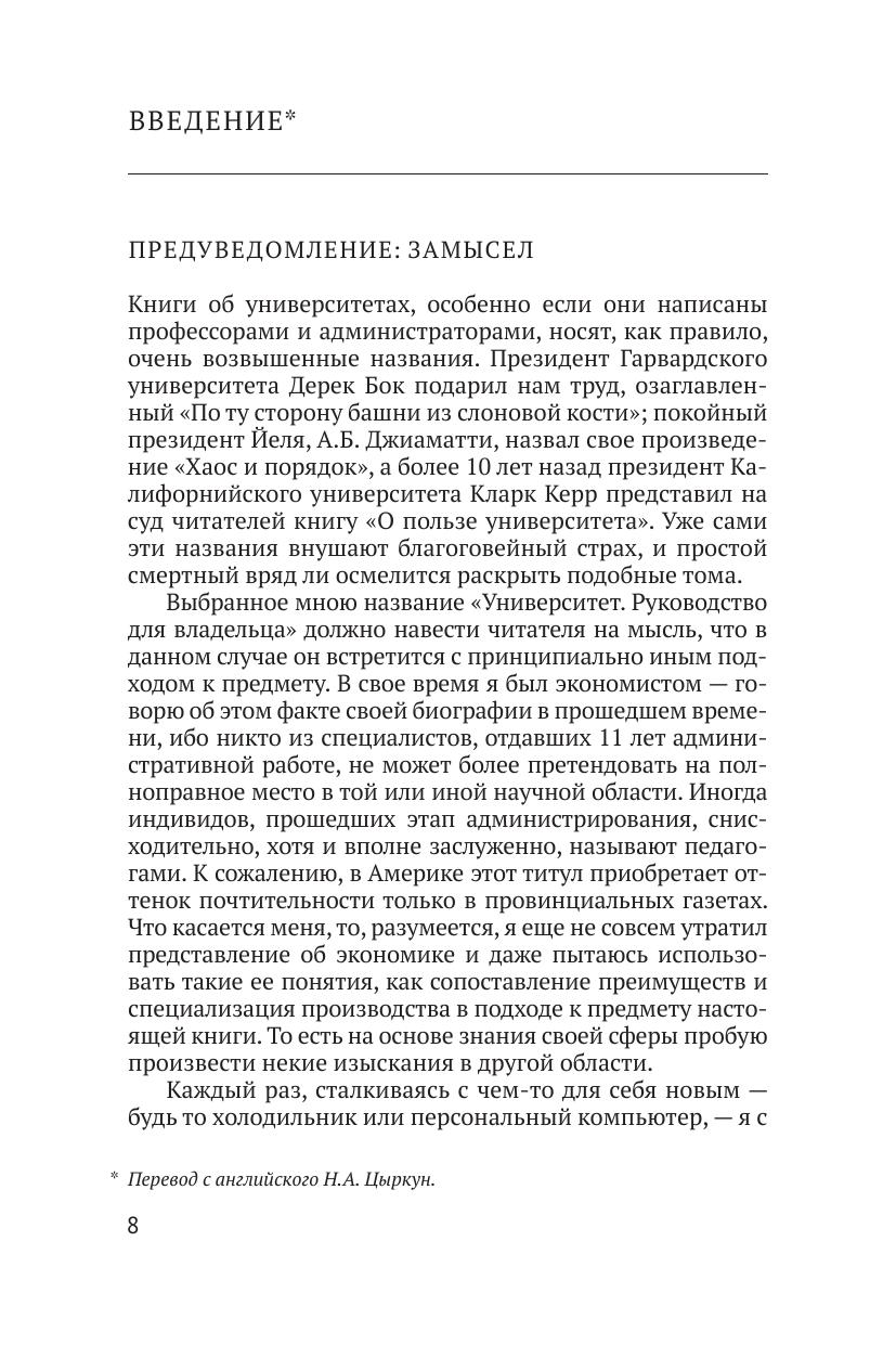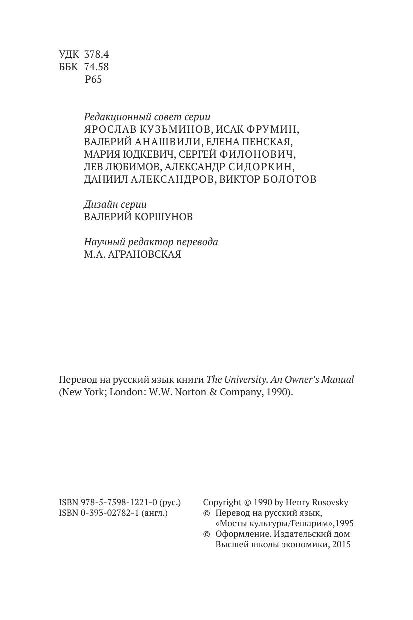 Генри Розовски в течение 11 лет был деканом факультета гуманитарных и естественных наук Гарвардского университета. в своей книге, мудрой, легкой и остроумной, он увлекательно рассказывает об американских университетах и колледжах — о том, как они управляются, с какими сложными проблемами сталкиваются. автор уделяет внимание всем без исключения «владельцам» университетов: студентам, администраторам, преподавателям, выпускникам, попечителям. Он щедро делится своим бесценным опытом высокопоставленного руководителя и дает коллегам практические советы, как отвечать на вопросы, как попросить о денежном пожертвовании, как разрешать конфликты. Эта книга читается подобно захватывающему роману, герой которого — легендарный Гарвард.