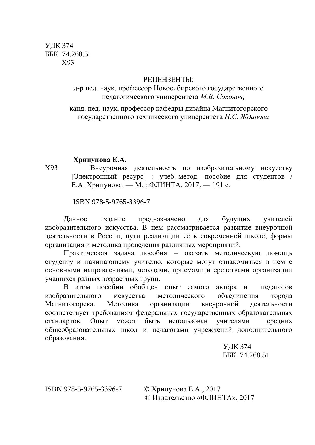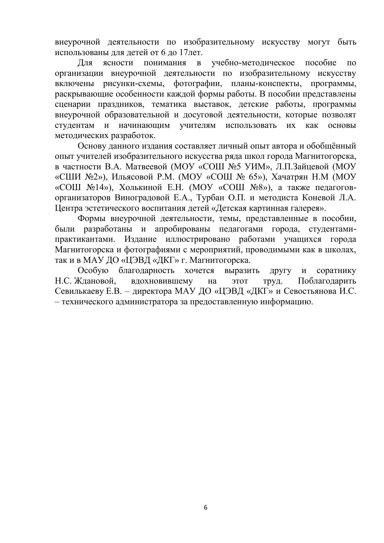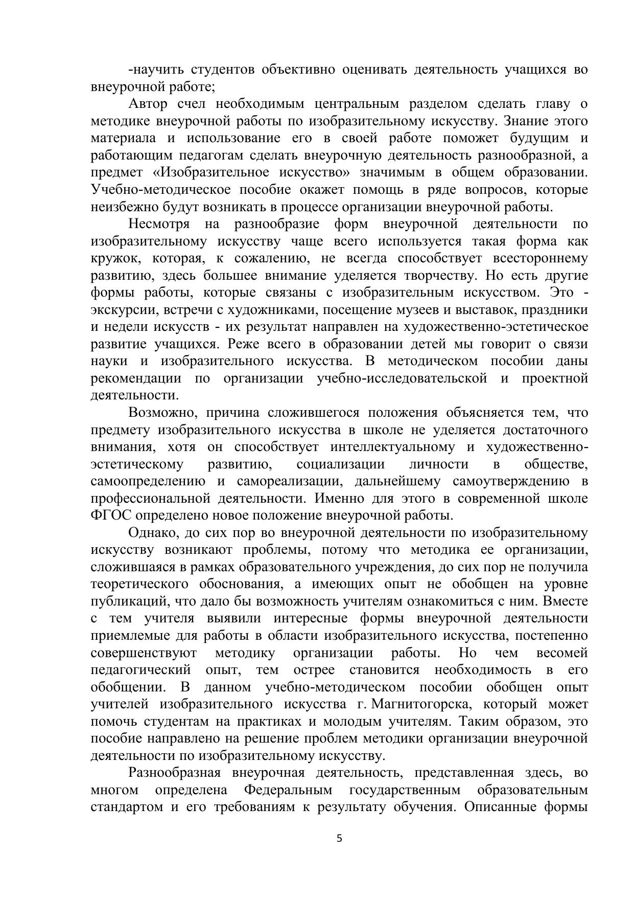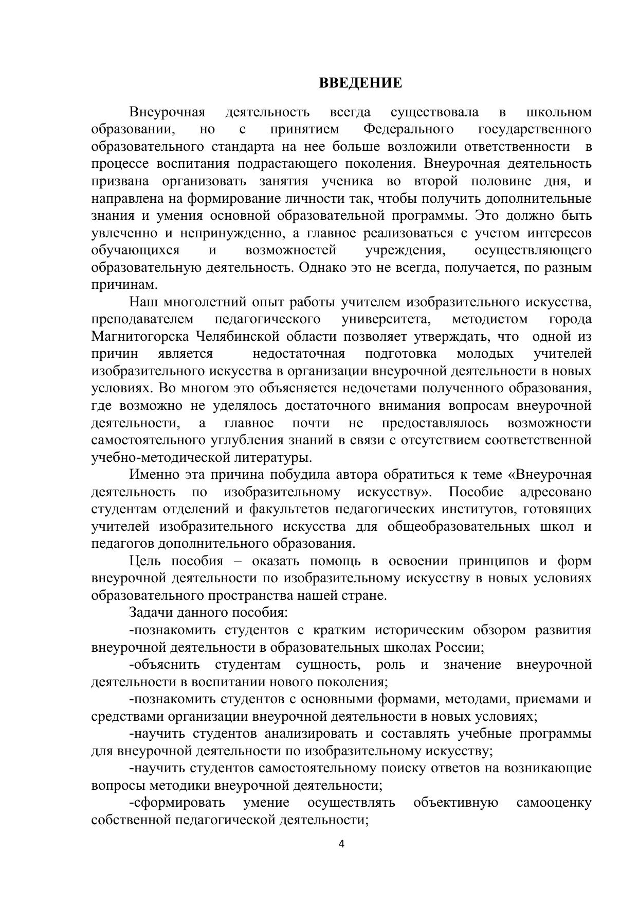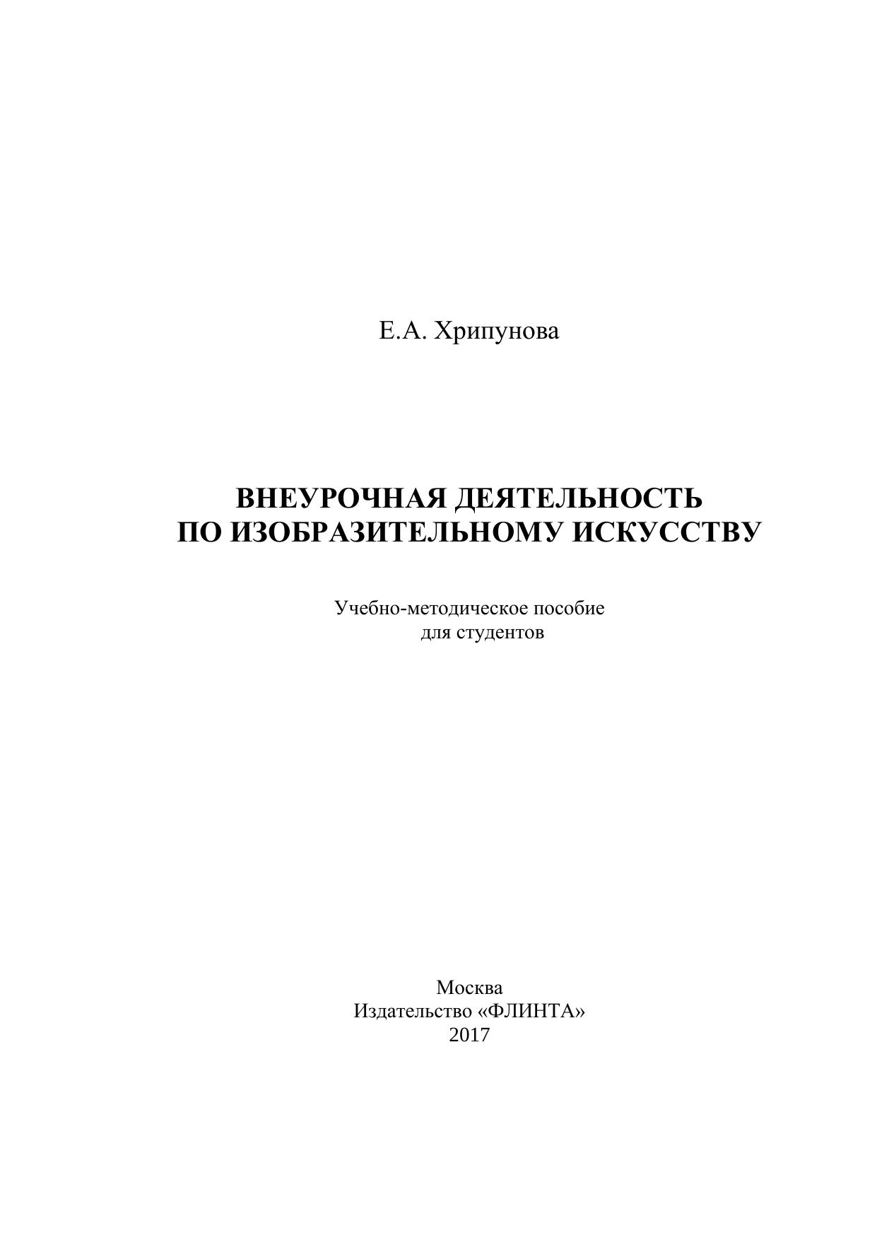 Данное издание предназначено для будущих учителей изобразительного искусства. В нем рассматривается развитие внеурочной деятельности в России, пути реализации ее в современной школе, формы организация и методика проведения различных мероприятий. Практическая задача пособия – оказать методическую помощь студенту и начинающему учителю, которые могут ознакомиться в нем с основными направлениями, методами, приемами и средствами организации учащихся разных возрастных групп. В этом пособии обобщен опыт самого автора и педагогов изобразительного искусства методического объединения города Магнитогорска. Методика организации внеурочной деятельности соответствует требованиям федеральных государственных образовательных стандартов. Опыт может быть использован учителями средних общеобразовательных школ и педагогами учреждений дополнительного образования.