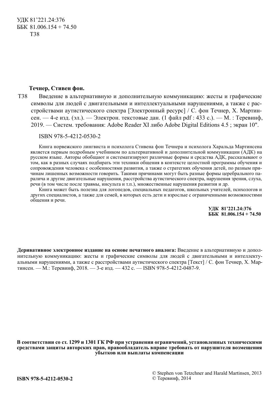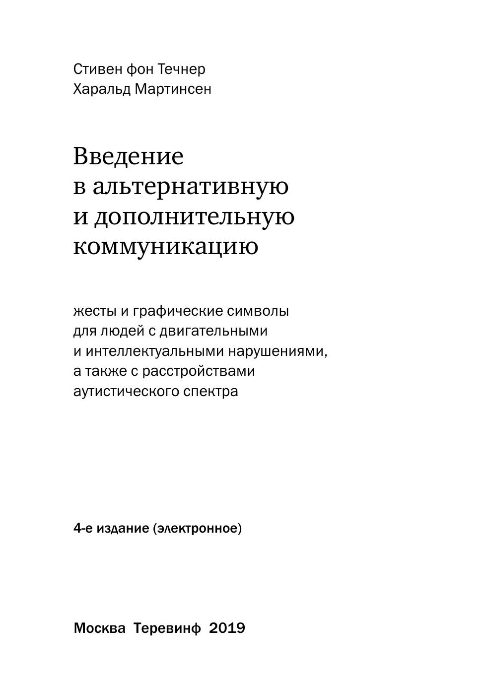 Книга норвежского лингвиста и психолога Стивена фон Течнера и психолога Харальда Мартинсена является первым подробным учебником по альтернативной и дополнительной коммуникации (АДК) на русском языке. Авторы обобщают и систематизируют различные формы и средства АДК, рассказывают о том, как в разных случаях подбирать эти техники общения в контексте целостной программы обучения и сопровождения человека с особенностями развития, а также о стратегиях обучения детей, по разным причинам лишенных возможности говорить. Такими причинами могут быть разные формы церебрального паралича и другие двигательные нарушения, расстройства аутистического спектра, нарушения зрения, слуха, речи (в том числе после травмы, инсульта и т.п.), множественные нарушения развития и др.